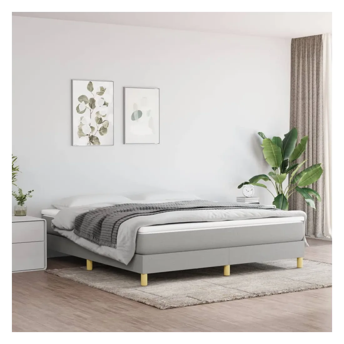Obtenez une meilleure nuit de sommeil reposante grâce à ce cadre de lit à ressorts ! Il est un supplément accueillant à toute chambre à coucher. Tissu durable : le tissu présente un aspect simple et épuré, et il est respirant et durable.Pieds de soutien : le lit est soutenu par des pieds robustes, qui assurent sa stabilité, sa sécurité et sa fermeté.Lattes de contreplaqué : les lattes de contreplaqué assurent une bonne répartition du poids, garantissant que le matelas reste en place à chaque torsion de votre corps pendant le sommeil. Bon à savoir :Un matelas n'est pas inclus avec ce lit. Nous offrons une sélection variée de matelas. Vous pouvez consulter notre boutique pour trouver un matelas assorti.