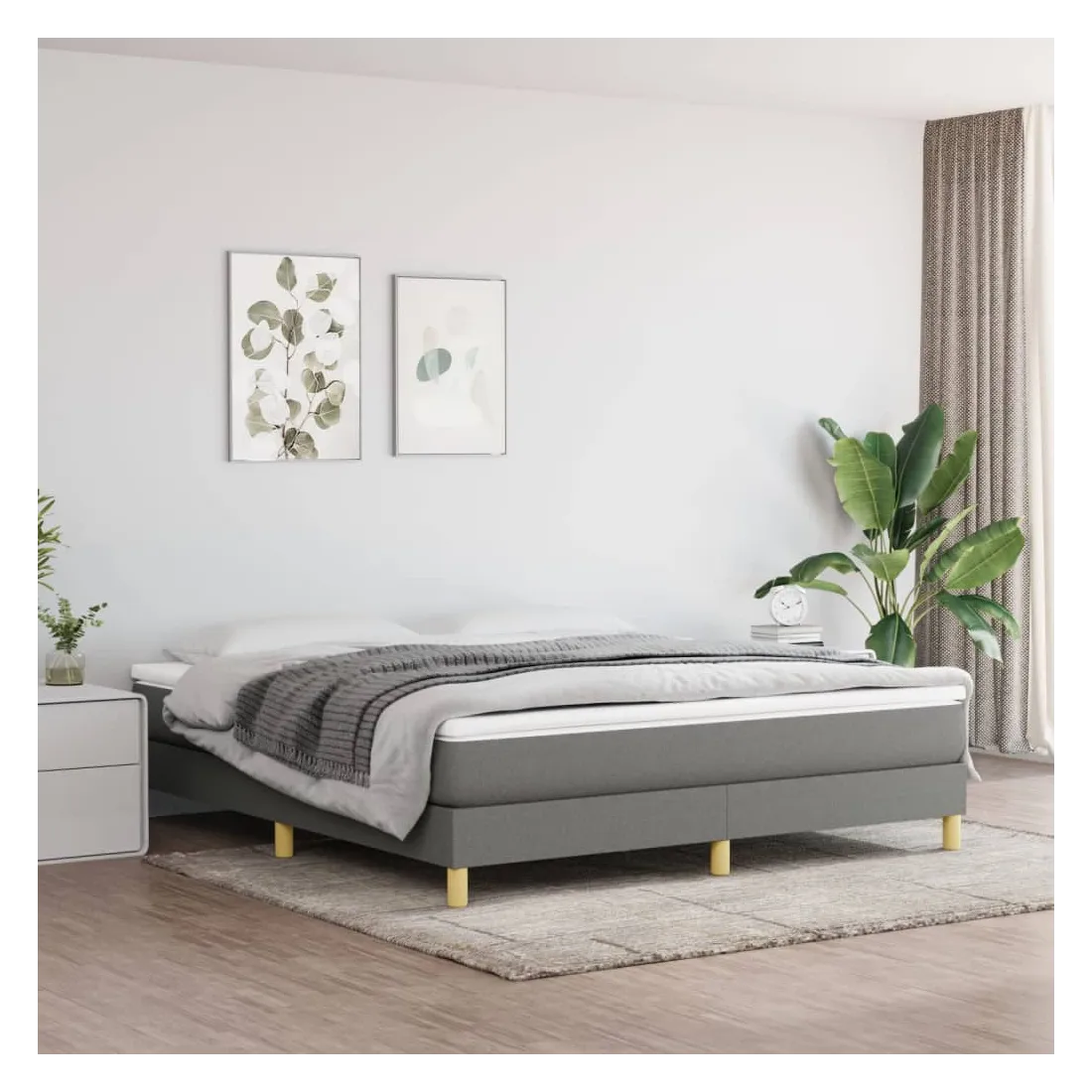 Obtenez une meilleure nuit de sommeil reposante grâce à ce cadre de lit à ressorts ! Il est un supplément accueillant à toute chambre à coucher. Tissu durable : le tissu présente un aspect simple et épuré, et il est respirant et durable.Pieds de soutien : le lit est soutenu par des pieds robustes, qui assurent sa stabilité, sa sécurité et sa fermeté.Lattes de contreplaqué : les lattes de contreplaqué assurent une bonne répartition du poids, garantissant que le matelas reste en place à chaque torsion de votre corps pendant le sommeil. Bon à savoir :Un matelas n'est pas inclus avec ce lit. Nous offrons une sélection variée de matelas. Vous pouvez consulter notre boutique pour trouver un matelas assorti.