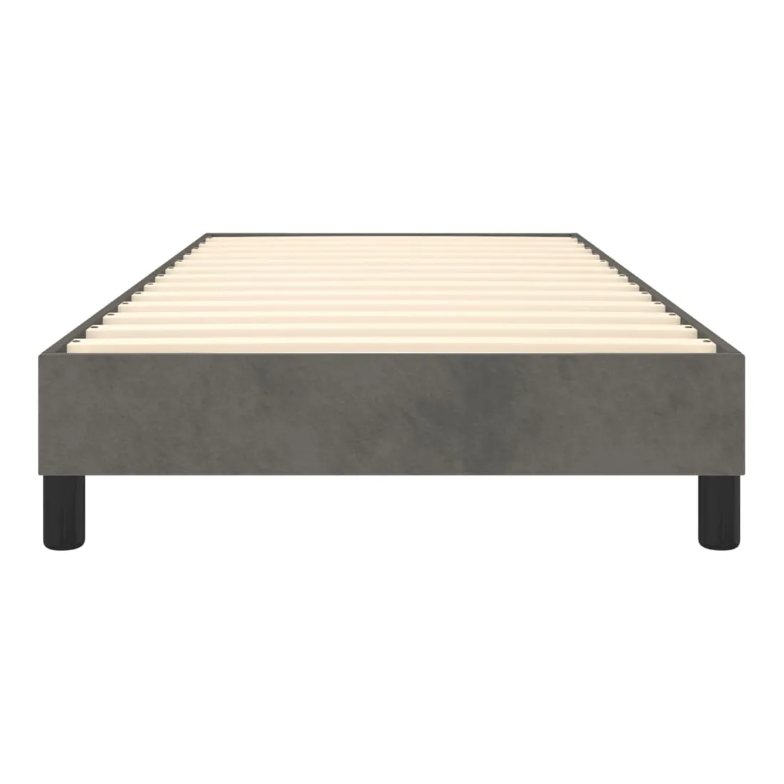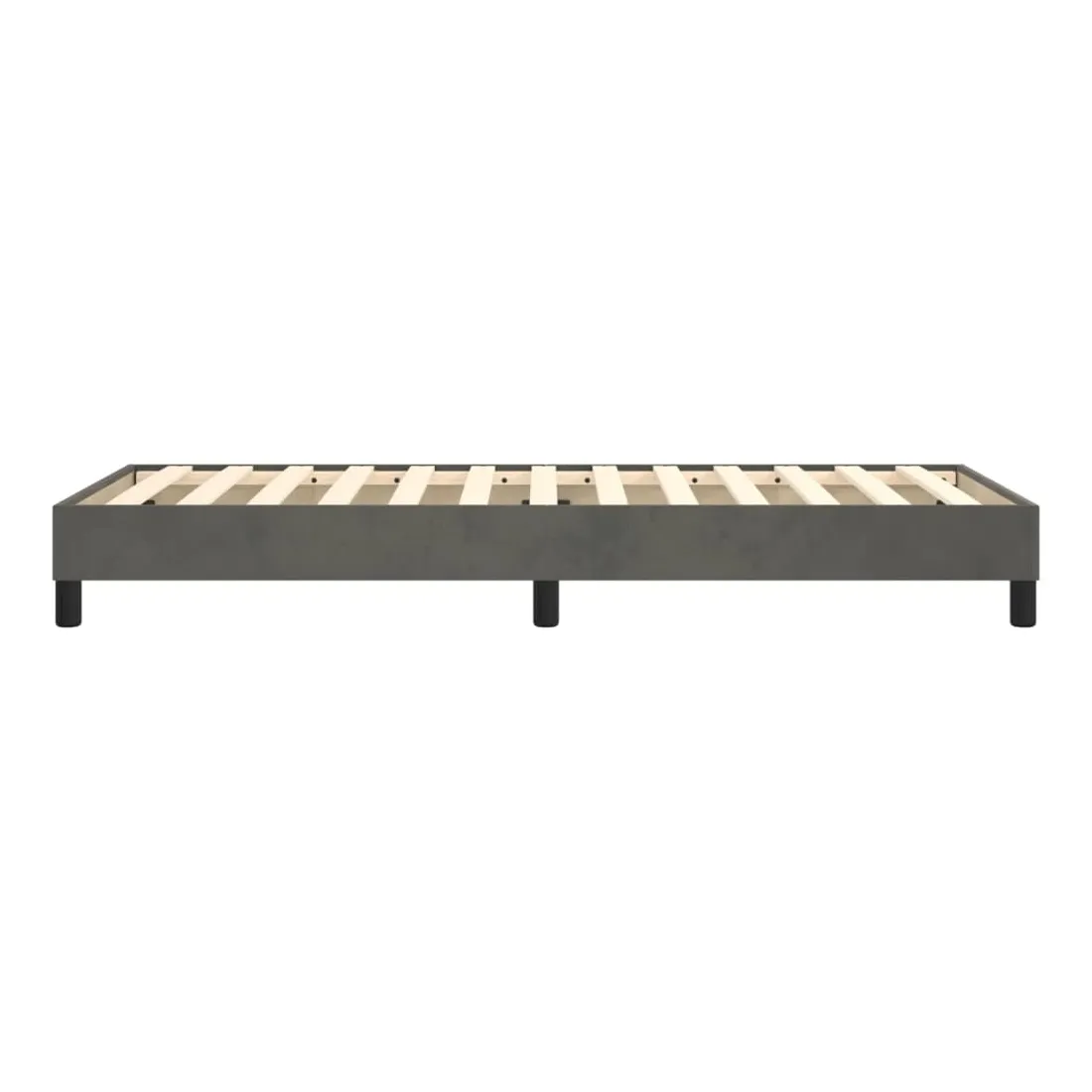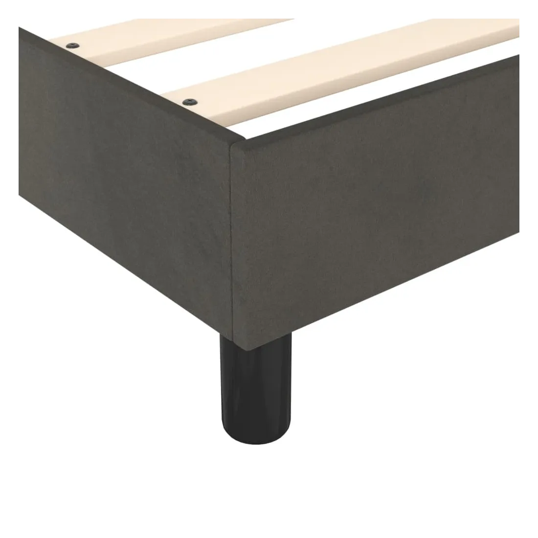 Obtenez une meilleure nuit de sommeil reposante grâce à ce cadre de lit à ressorts ! Il est un supplément accueillant à toute chambre à coucher. Velours doux : le velours est un tissu doux et luxueux qui se reconnaît à son tas dense de fibres uniformément coupées qui ont une touche lisse. Le tissu en velours présente un toucher doux distinctif, ce qui le rend confortable au toucher.Pieds de soutien : le lit est soutenu par des pieds robustes, qui assurent sa stabilité, sa sécurité et sa fermeté.Lattes de contreplaqué : les lattes de contreplaqué assurent une bonne répartition du poids, garantissant que le matelas reste en place à chaque torsion de votre corps pendant le sommeil. Bon à savoir :Un matelas n'est pas inclus avec ce lit. Nous offrons une sélection variée de matelas. Vous pouvez consulter notre boutique pour trouver un matelas assorti.