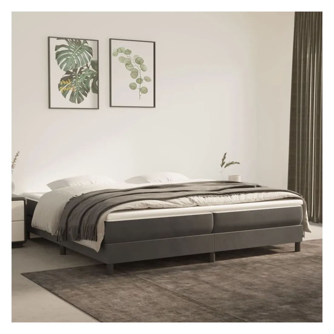 Obtenez une meilleure nuit de sommeil reposante grâce à ce cadre de lit à ressorts ! Il est un supplément accueillant à toute chambre à coucher. Velours doux : le velours est un tissu doux et luxueux qui se reconnaît à son tas dense de fibres uniformément coupées qui ont une touche lisse. Le tissu en velours présente un toucher doux distinctif, ce qui le rend confortable au toucher.Pieds de soutien : le lit est soutenu par des pieds robustes, qui assurent sa stabilité, sa sécurité et sa fermeté.Lattes de contreplaqué : les lattes de contreplaqué assurent une bonne répartition du poids, garantissant que le matelas reste en place à chaque torsion de votre corps pendant le sommeil. Bon à savoir :Un matelas n'est pas inclus avec ce lit. Nous offrons une sélection variée de matelas. Vous pouvez consulter notre boutique pour trouver un matelas assorti.