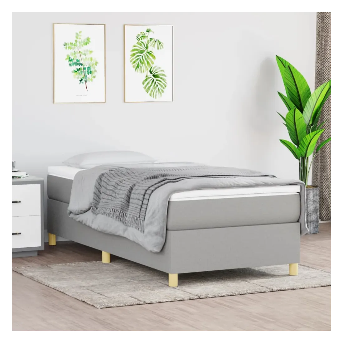 Obtenez une meilleure nuit de sommeil reposante grâce à ce cadre de lit à ressorts ! Il est un supplément accueillant à toute chambre à coucher. Tissu durable : le tissu présente un aspect simple et épuré, et il est respirant et durable.Pieds de soutien : le lit est soutenu par des pieds robustes, qui assurent sa stabilité, sa sécurité et sa fermeté.Lattes de contreplaqué : les lattes de contreplaqué assurent une bonne répartition du poids, garantissant que le matelas reste en place à chaque torsion de votre corps pendant le sommeil. Bon à savoir :Un matelas n'est pas inclus avec ce lit. Nous offrons une sélection variée de matelas. Vous pouvez consulter notre boutique pour trouver un matelas assorti.