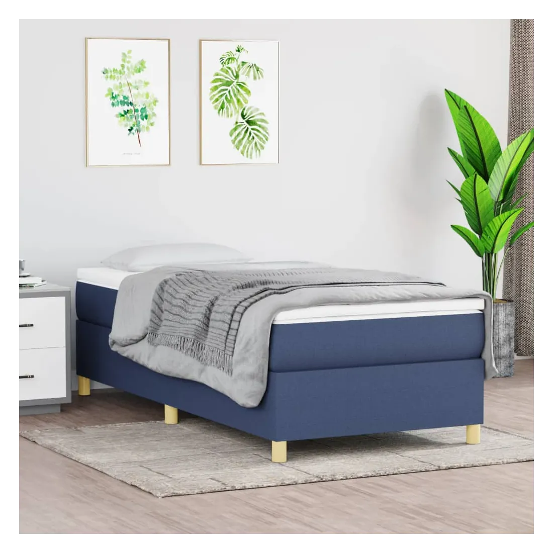 Obtenez une meilleure nuit de sommeil reposante grâce à ce cadre de lit à ressorts ! Il est un supplément accueillant à toute chambre à coucher. Tissu durable : le tissu présente un aspect simple et épuré, et il est respirant et durable.Pieds de soutien : le lit est soutenu par des pieds robustes, qui assurent sa stabilité, sa sécurité et sa fermeté.Lattes de contreplaqué : les lattes de contreplaqué assurent une bonne répartition du poids, garantissant que le matelas reste en place à chaque torsion de votre corps pendant le sommeil. Bon à savoir :Un matelas n'est pas inclus avec ce lit. Nous offrons une sélection variée de matelas. Vous pouvez consulter notre boutique pour trouver un matelas assorti.