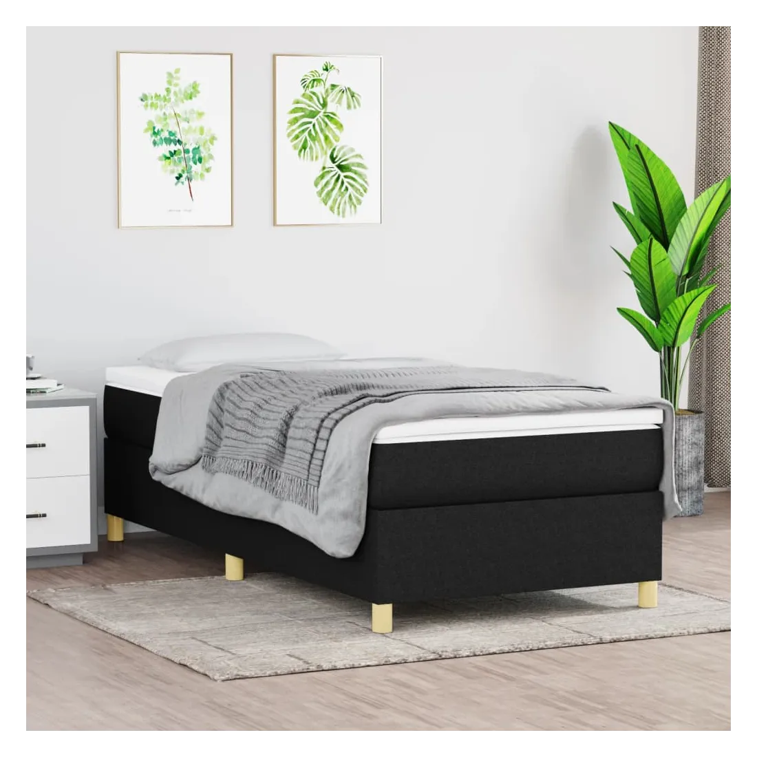 Obtenez une meilleure nuit de sommeil reposante grâce à ce cadre de lit à ressorts ! Il est un supplément accueillant à toute chambre à coucher. Tissu durable : le tissu présente un aspect simple et épuré, et il est respirant et durable.Pieds de soutien : le lit est soutenu par des pieds robustes, qui assurent sa stabilité, sa sécurité et sa fermeté.Lattes de contreplaqué : les lattes de contreplaqué assurent une bonne répartition du poids, garantissant que le matelas reste en place à chaque torsion de votre corps pendant le sommeil. Bon à savoir :Un matelas n'est pas inclus avec ce lit. Nous offrons une sélection variée de matelas. Vous pouvez consulter notre boutique pour trouver un matelas assorti.