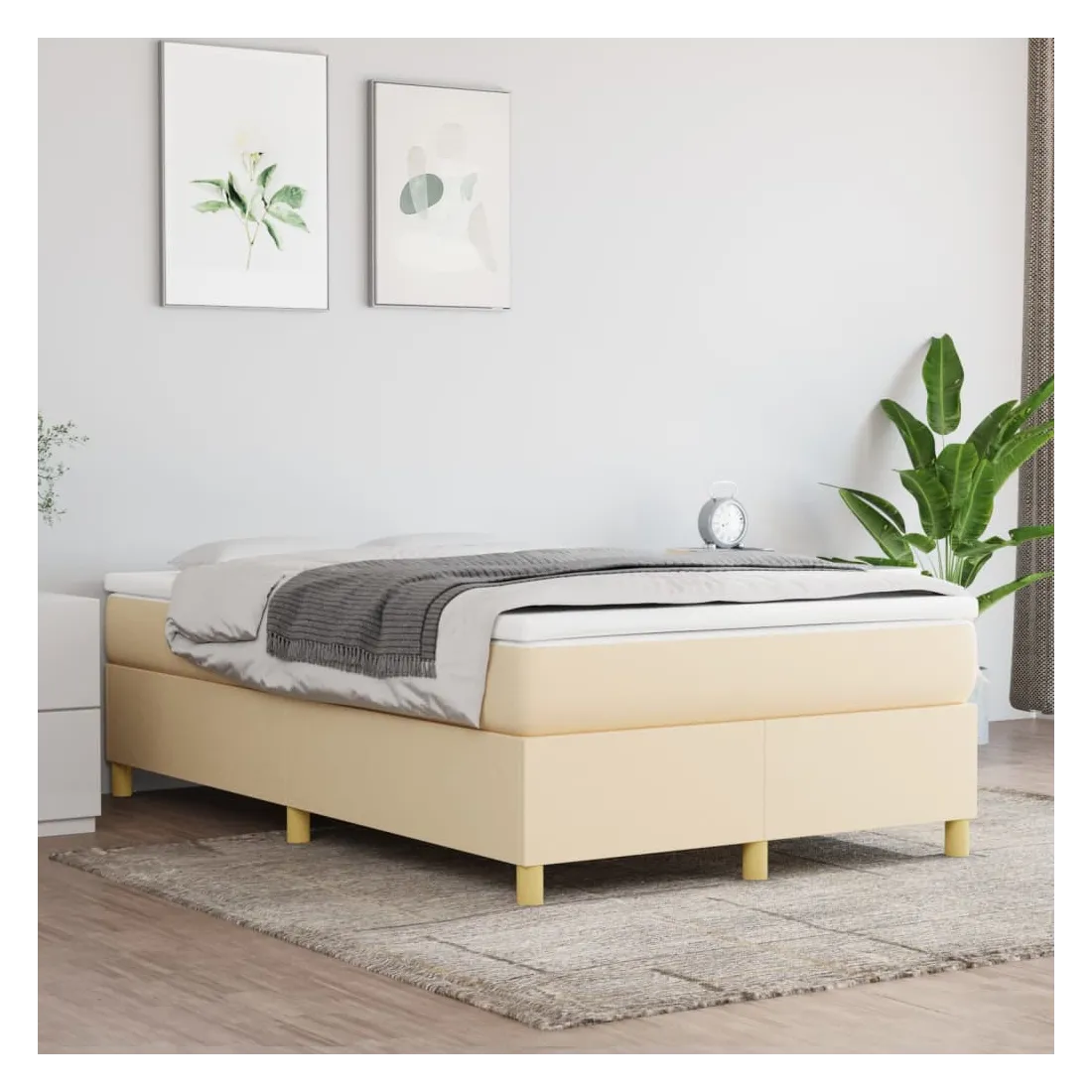 Cadre de lit à ressorts crème 120x200 cm tissu