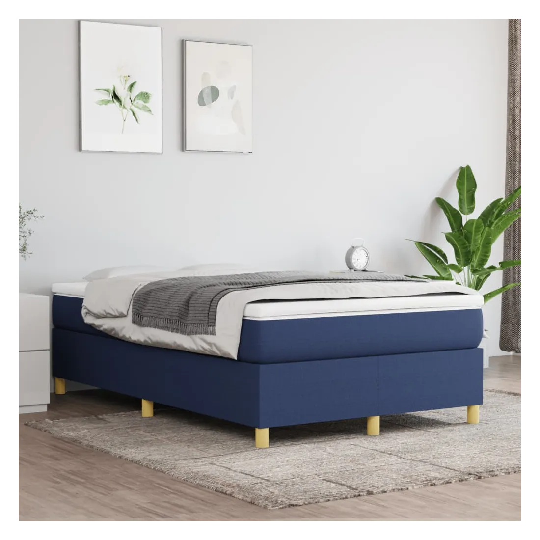 Obtenez une meilleure nuit de sommeil reposante grâce à ce cadre de lit à ressorts ! Il est un supplément accueillant à toute chambre à coucher. Tissu durable : le tissu présente un aspect simple et épuré, et il est respirant et durable.Pieds de soutien : le lit est soutenu par des pieds robustes, qui assurent sa stabilité, sa sécurité et sa fermeté.Lattes de contreplaqué : les lattes de contreplaqué assurent une bonne répartition du poids, garantissant que le matelas reste en place à chaque torsion de votre corps pendant le sommeil. Bon à savoir :Un matelas n'est pas inclus avec ce lit. Nous offrons une sélection variée de matelas. Vous pouvez consulter notre boutique pour trouver un matelas assorti.