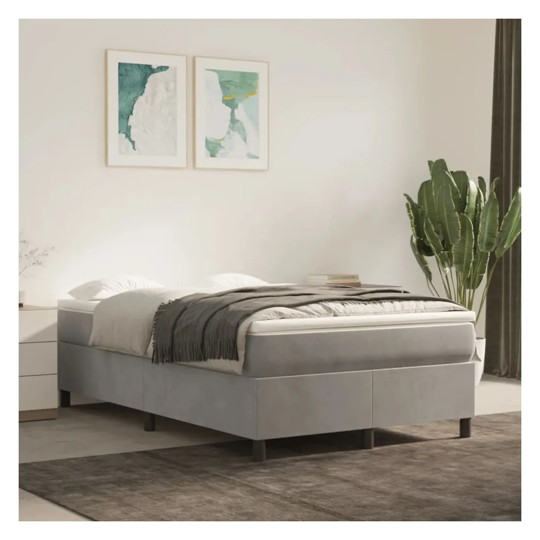 Obtenez une meilleure nuit de sommeil reposante grâce à ce cadre de lit à ressorts ! Il est un supplément accueillant à toute chambre à coucher. Velours doux : le velours est un tissu doux et luxueux qui se reconnaît à son tas dense de fibres uniformément coupées qui ont une touche lisse. Le tissu en velours présente un toucher doux distinctif, ce qui le rend confortable au toucher.Pieds de soutien : le lit est soutenu par des pieds robustes, qui assurent sa stabilité, sa sécurité et sa fermeté.Lattes de contreplaqué : les lattes de contreplaqué assurent une bonne répartition du poids, garantissant que le matelas reste en place à chaque torsion de votre corps pendant le sommeil. Bon à savoir :Un matelas n'est pas inclus avec ce lit. Nous offrons une sélection variée de matelas. Vous pouvez consulter notre boutique pour trouver un matelas assorti.
