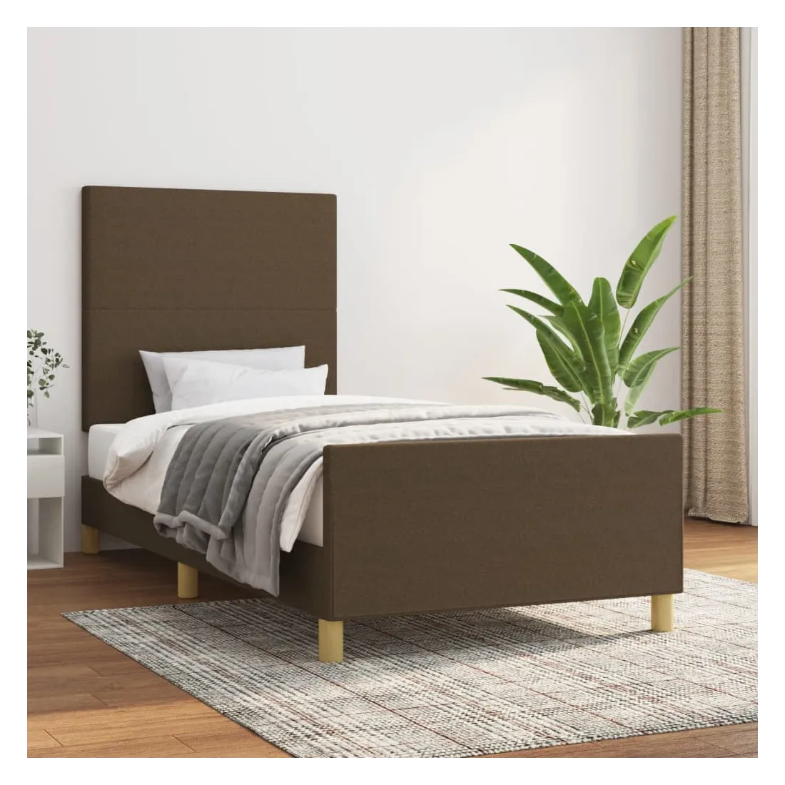 Cadre de lit sans matelas marron foncé 90x190 cm tissu