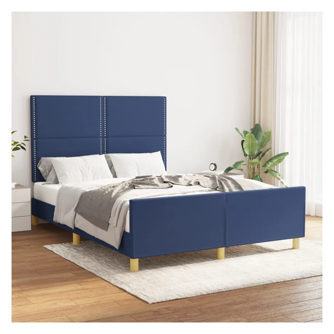 Cadre de lit sans matelas bleu 140x200 cm tissu