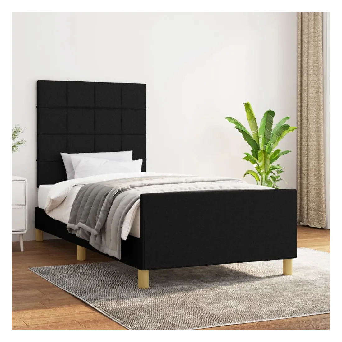 Obtenez une meilleure nuit de sommeil reposante grâce à ce cadre de lit avec tête de lit ! Il est un supplément accueillant à toute chambre à coucher. Tissu durable : le tissu présente un aspect simple et épuré, et il est respirant et durable.Hauteur réglable : la tête de lit est réglable en hauteur selon vos préférences.Pieds de soutien : le lit est soutenu par des pieds robustes, qui assurent sa stabilité, sa sécurité et sa fermeté.Lattes de contreplaqué : les lattes de contreplaqué assurent une bonne répartition du poids, garantissant que le matelas reste en place à chaque torsion de votre corps pendant le sommeil.Excellent soutien : la tête de lit vous offre un excellent soutien du dos lorsque vous êtes assis dans votre lit pour lire ou regarder la télévision. Remarque :La livraison comprend uniquement un cadre de lit. Le matelas n'est pas inclus. Vous pouvez consulter notre boutique pour trouver les matelas assortis.Chaque produit est livré avec un manuel de montage dans la boîte pour un montage facile.