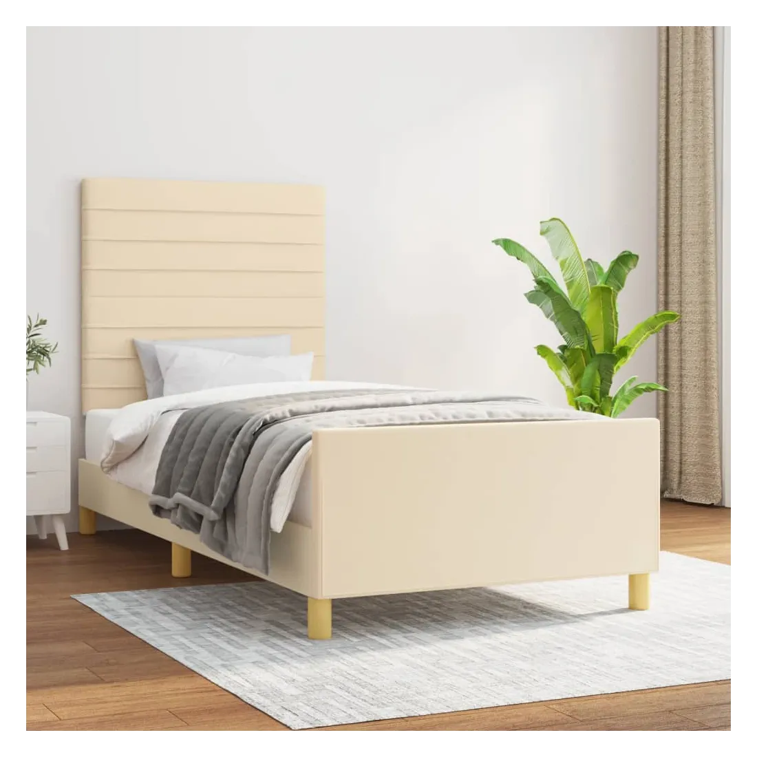 Cadre de lit sans matelas crème 100x200 cm tissu