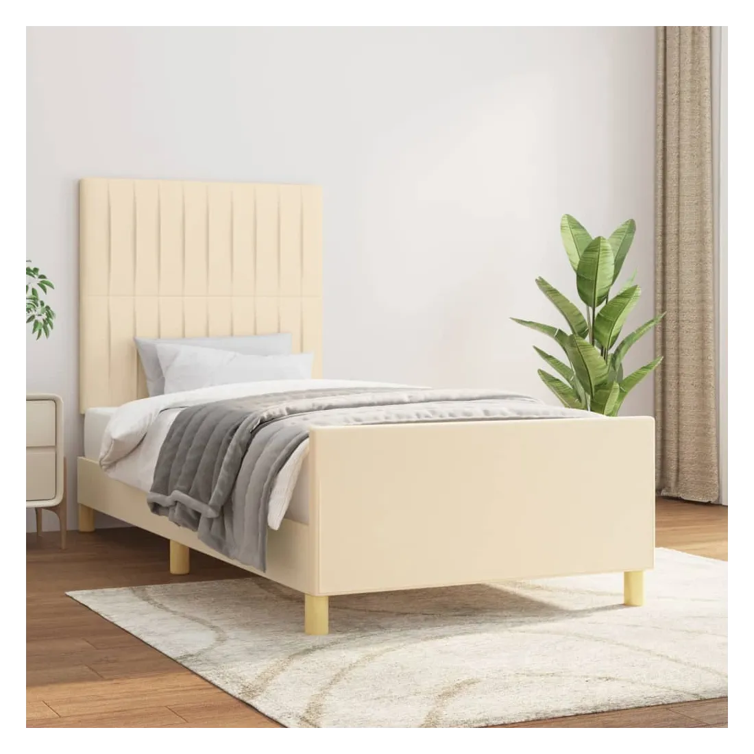 Cadre de lit sans matelas crème 90x190 cm tissu