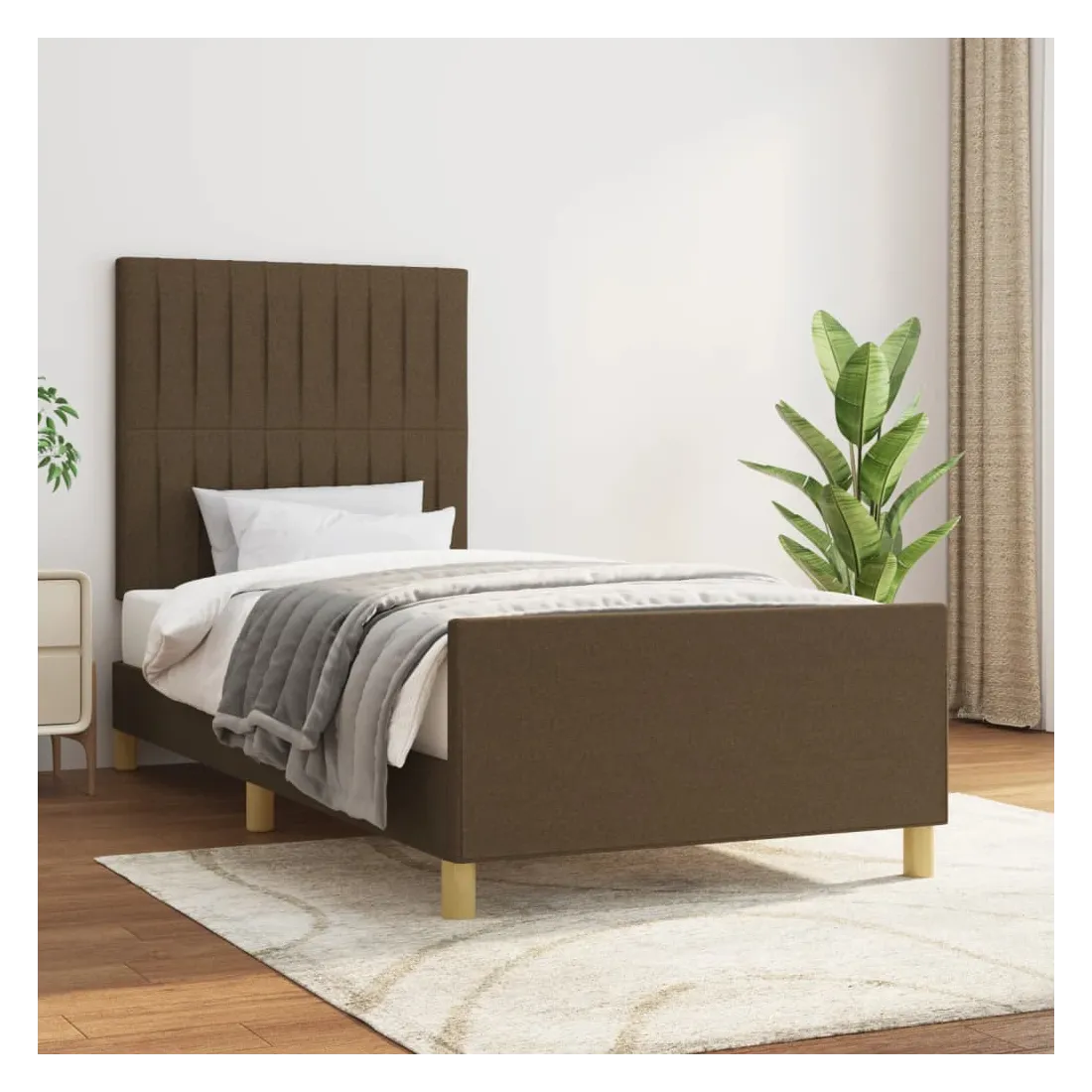 Cadre de lit sans matelas marron foncé 100x200 cm tissu