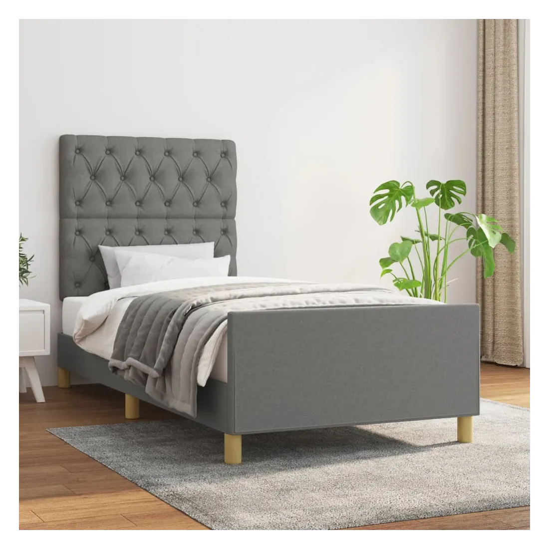 Obtenez une meilleure nuit de sommeil reposante grâce à ce cadre de lit avec tête de lit ! Il est un supplément accueillant à toute chambre à coucher. Tissu durable : le tissu présente un aspect simple et épuré, et il est respirant et durable.Hauteur réglable : la tête de lit est réglable en hauteur selon vos préférences.Pieds de soutien : le lit est soutenu par des pieds robustes, qui assurent sa stabilité, sa sécurité et sa fermeté.Lattes de contreplaqué : les lattes de contreplaqué assurent une bonne répartition du poids, garantissant que le matelas reste en place à chaque torsion de votre corps pendant le sommeil.Excellent soutien : la tête de lit vous offre un excellent soutien du dos lorsque vous êtes assis dans votre lit pour lire ou regarder la télévision. Remarque :La livraison comprend uniquement un cadre de lit. Le matelas n'est pas inclus. Vous pouvez consulter notre boutique pour trouver les matelas assortis.Chaque produit est livré avec un manuel de montage dans la boîte pour un montage facile.