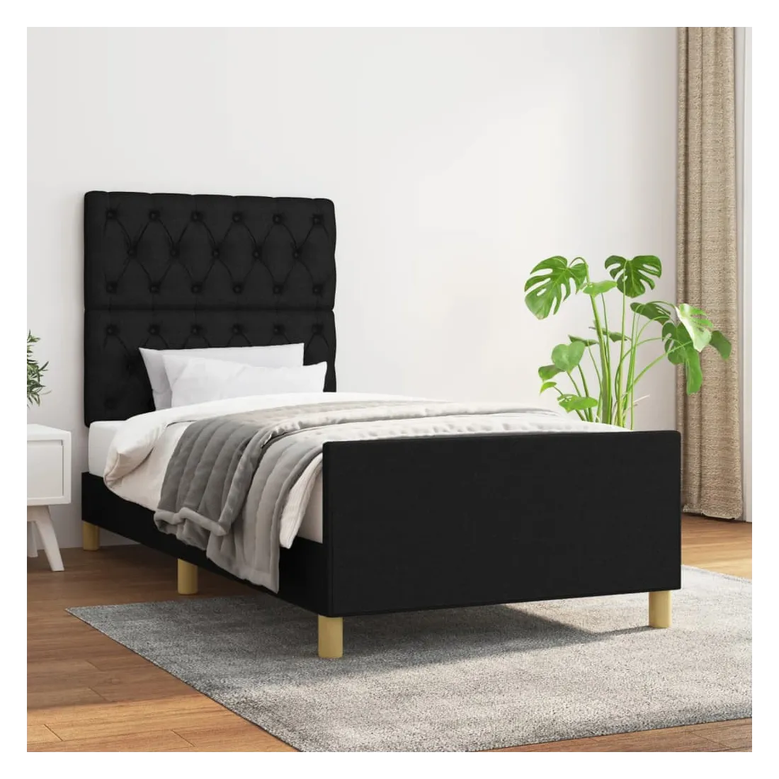 Obtenez une meilleure nuit de sommeil reposante grâce à ce cadre de lit avec tête de lit ! Il est un supplément accueillant à toute chambre à coucher. Tissu durable : le tissu présente un aspect simple et épuré, et il est respirant et durable.Hauteur réglable : la tête de lit est réglable en hauteur selon vos préférences.Pieds de soutien : le lit est soutenu par des pieds robustes, qui assurent sa stabilité, sa sécurité et sa fermeté.Lattes de contreplaqué : les lattes de contreplaqué assurent une bonne répartition du poids, garantissant que le matelas reste en place à chaque torsion de votre corps pendant le sommeil.Excellent soutien : la tête de lit vous offre un excellent soutien du dos lorsque vous êtes assis dans votre lit pour lire ou regarder la télévision. Remarque :La livraison comprend uniquement un cadre de lit. Le matelas n'est pas inclus. Vous pouvez consulter notre boutique pour trouver les matelas assortis.Chaque produit est livré avec un manuel de montage dans la boîte pour un montage facile.