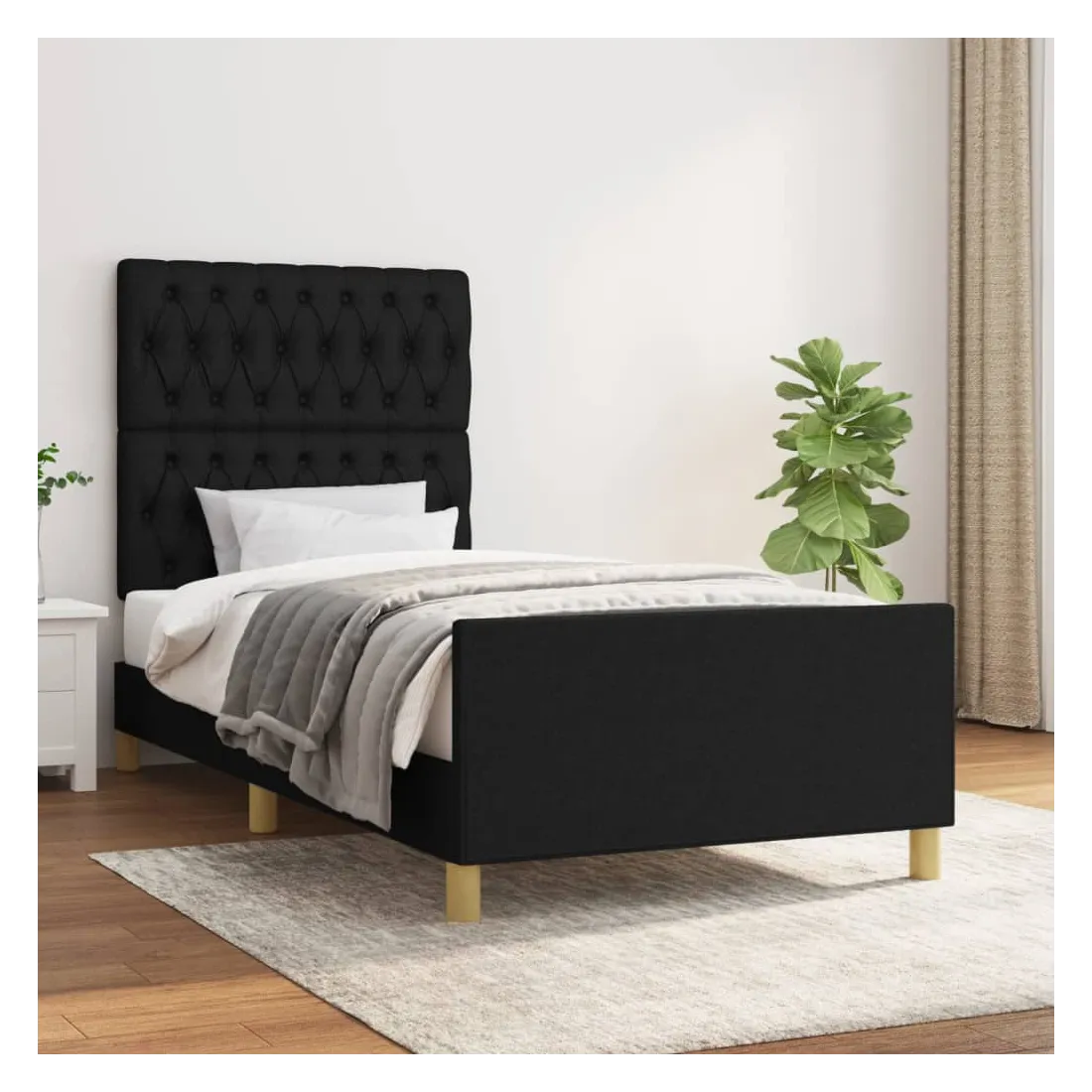 Cadre de lit sans matelas noir 90x190 cm tissu
