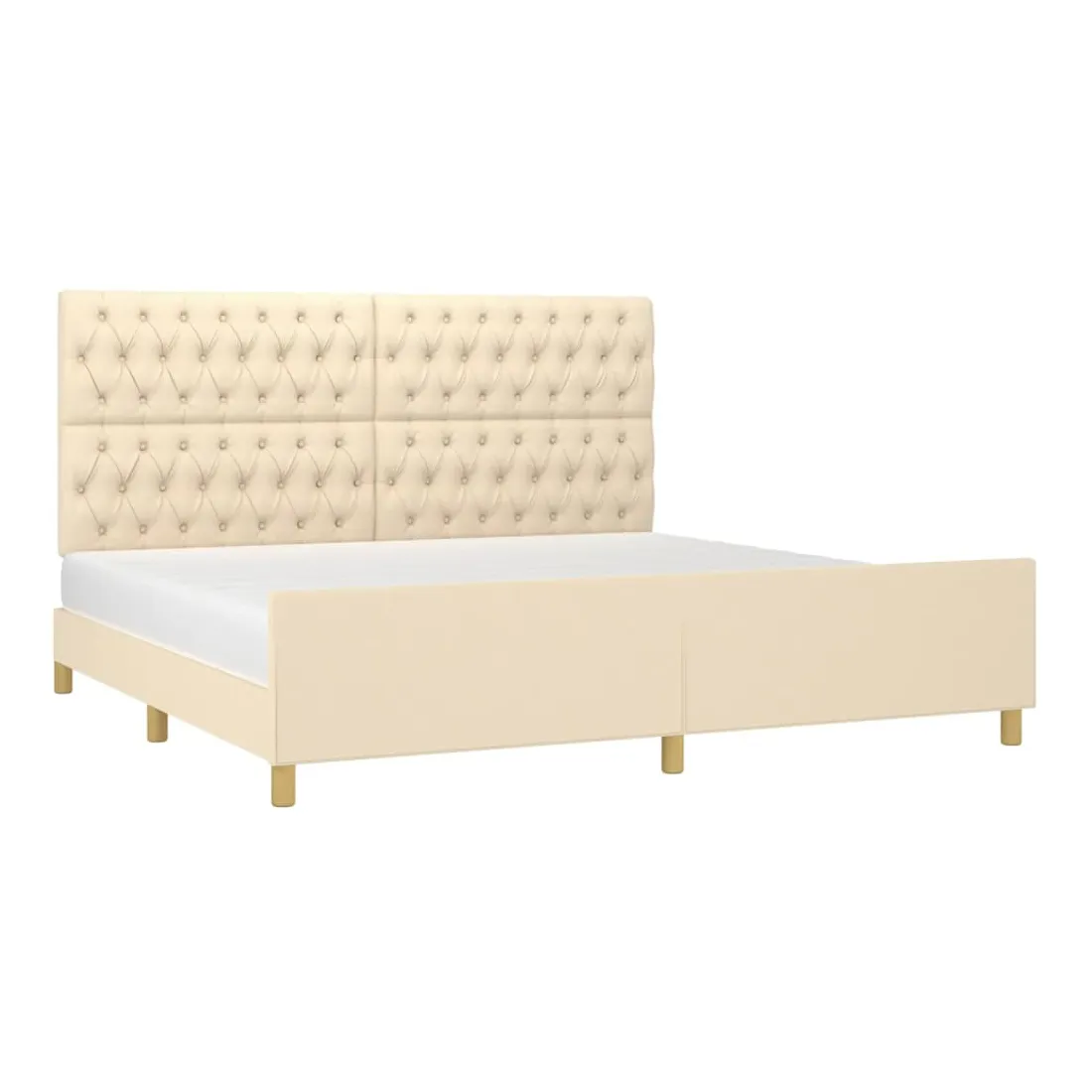 Cadre de lit sans matelas et tête de lit crème 200x200 cm tissu