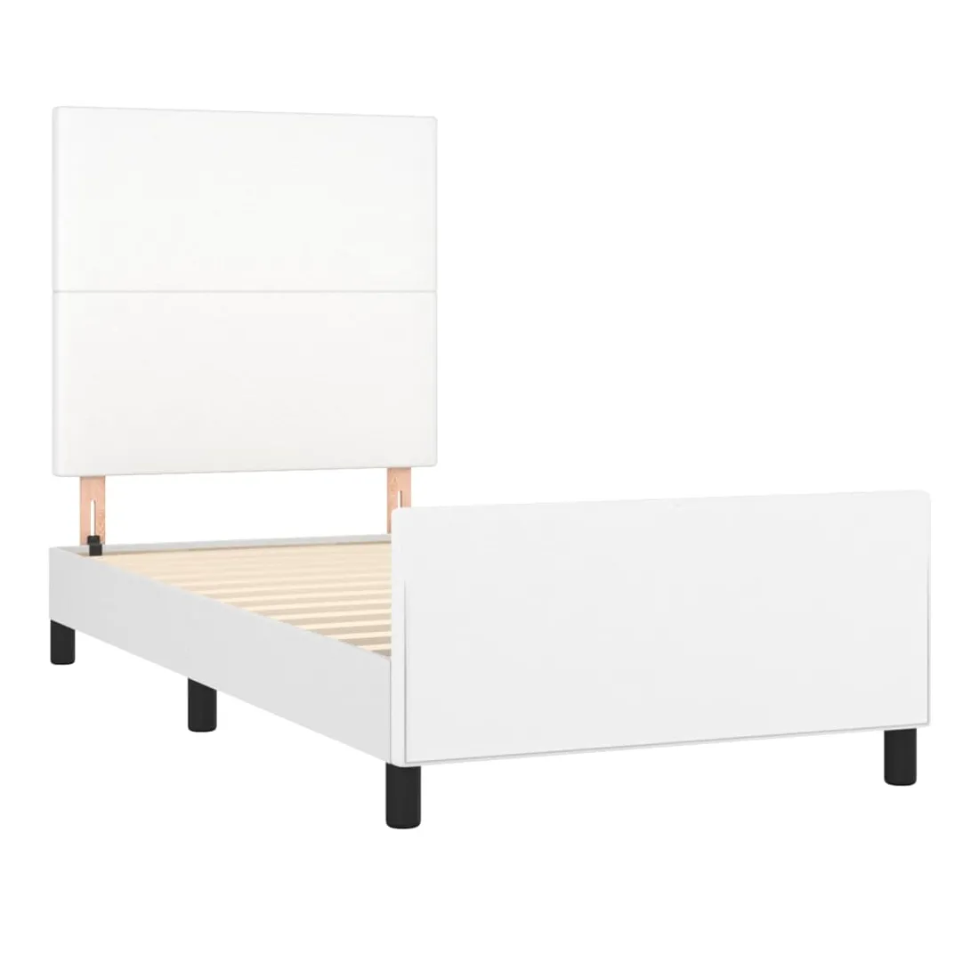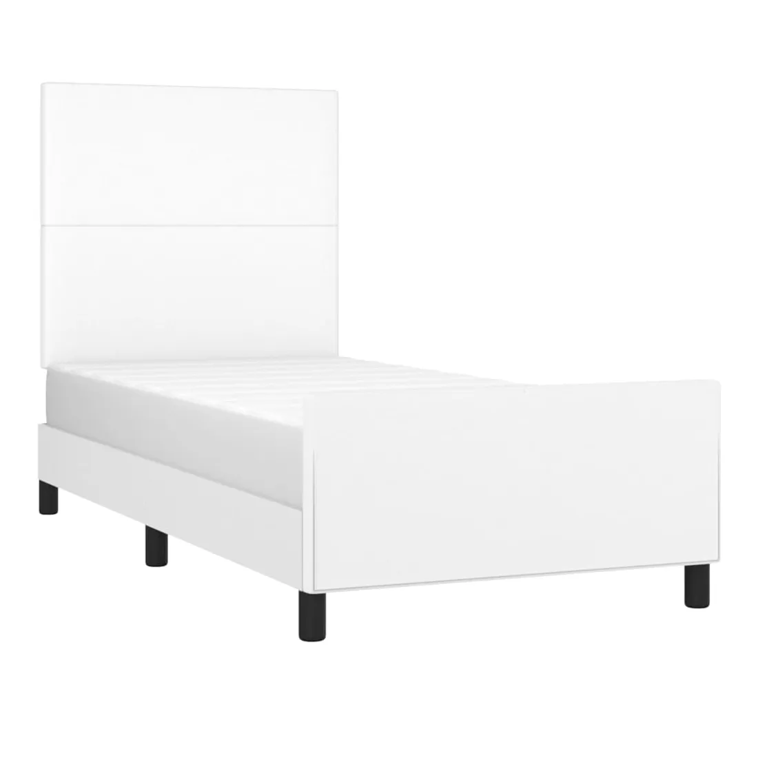 Obtenez une meilleure nuit de sommeil reposante grâce à ce cadre de lit avec tête de lit ! Il est un supplément accueillant à toute chambre à coucher. Similicuir durable : le similicuir de qualité supérieure est un matériau très durable. Il est résistant aux taches, ce qui le rend facile à nettoyer avec un chiffon humide. La surface lisse donne également un aspect luxueux et la beauté du cuir véritable.Hauteur réglable : la tête de lit est réglable en hauteur selon vos préférences.Pieds de soutien : le lit est soutenu par des pieds robustes, qui assurent sa stabilité, sa sécurité et sa fermeté.Lattes de contreplaqué : les lattes de contreplaqué assurent une bonne répartition du poids, garantissant que le matelas reste en place à chaque torsion de votre corps pendant le sommeil.Excellent soutien : la tête de lit vous offre un excellent soutien du dos lorsque vous êtes assis dans votre lit pour lire ou regarder la télévision. Remarque :La livraison comprend uniquement un cadre de lit. Le matelas n'est pas inclus. Vous pouvez consulter notre boutique pour trouver les matelas assortis.Chaque produit est livré avec un manuel de montage dans la boîte pour un montage facile.