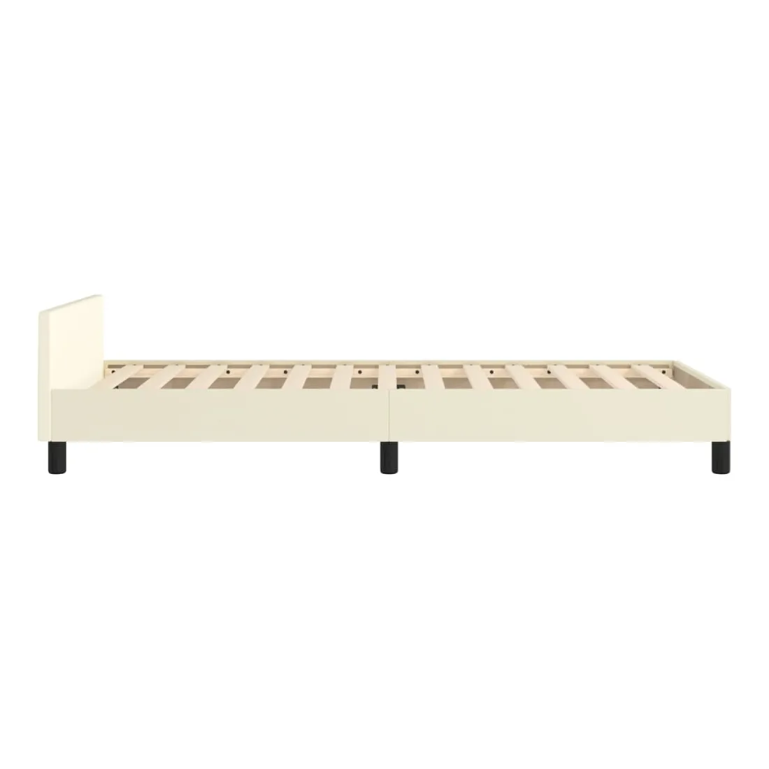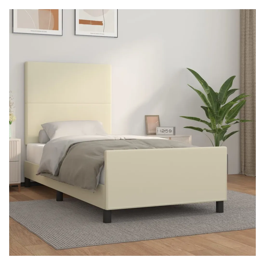 Obtenez une meilleure nuit de sommeil reposante grâce à ce cadre de lit avec tête de lit ! Il est un supplément accueillant à toute chambre à coucher. Similicuir durable : le similicuir de qualité supérieure est un matériau très durable. Il est résistant aux taches, ce qui le rend facile à nettoyer avec un chiffon humide. La surface lisse donne également un aspect luxueux et la beauté du cuir véritable.Hauteur réglable : la tête de lit est réglable en hauteur selon vos préférences.Pieds de soutien : le lit est soutenu par des pieds robustes, qui assurent sa stabilité, sa sécurité et sa fermeté.Lattes de contreplaqué : les lattes de contreplaqué assurent une bonne répartition du poids, garantissant que le matelas reste en place à chaque torsion de votre corps pendant le sommeil.Excellent soutien : la tête de lit vous offre un excellent soutien du dos lorsque vous êtes assis dans votre lit pour lire ou regarder la télévision. Remarque :La livraison comprend uniquement un cadre de lit. Le matelas n'est pas inclus. Vous pouvez consulter notre boutique pour trouver les matelas assortis.Chaque produit est livré avec un manuel de montage dans la boîte pour un montage facile.