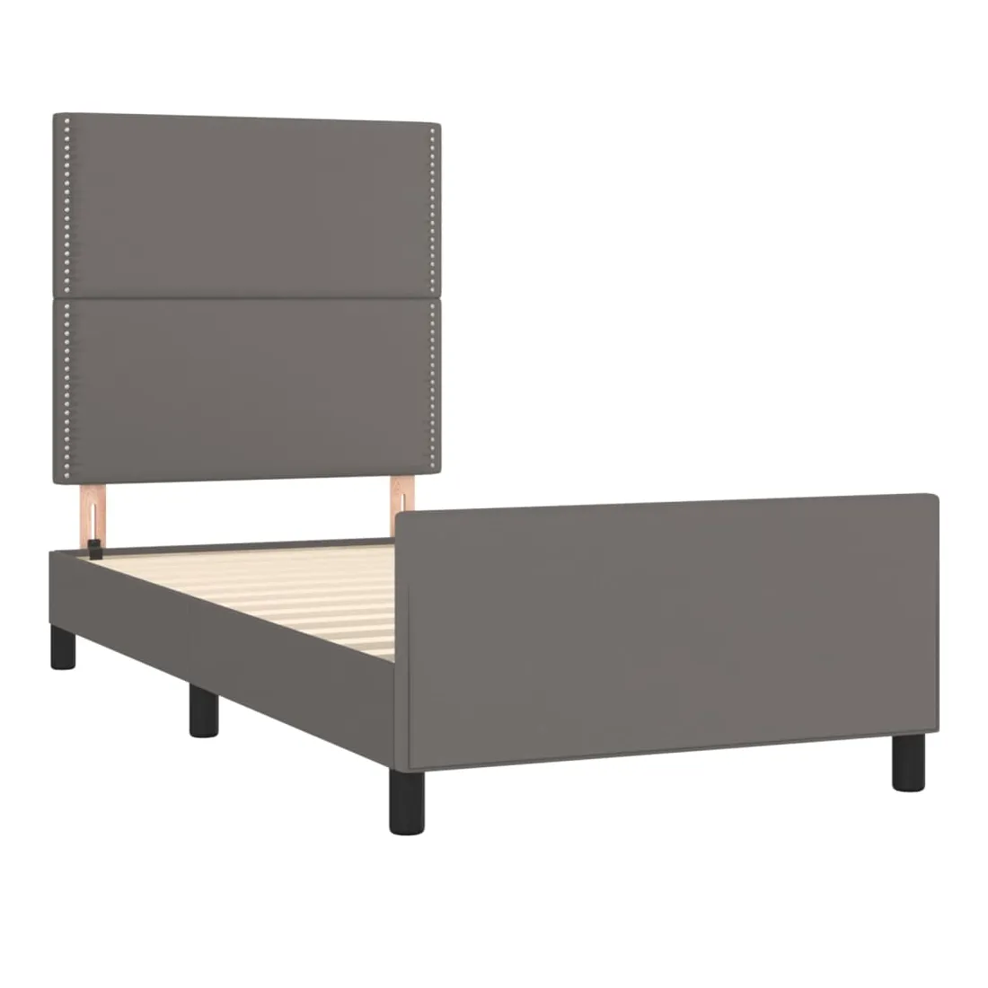 Obtenez une meilleure nuit de sommeil reposante grâce à ce cadre de lit avec tête de lit ! Il est un supplément accueillant à toute chambre à coucher. Similicuir durable : le similicuir de qualité supérieure est un matériau très durable. Il est résistant aux taches, ce qui le rend facile à nettoyer avec un chiffon humide. La surface lisse donne également un aspect luxueux et la beauté du cuir véritable.Hauteur réglable : la tête de lit est réglable en hauteur selon vos préférences.Pieds de soutien : le lit est soutenu par des pieds robustes, qui assurent sa stabilité, sa sécurité et sa fermeté.Lattes de contreplaqué : les lattes de contreplaqué assurent une bonne répartition du poids, garantissant que le matelas reste en place à chaque torsion de votre corps pendant le sommeil.Excellent soutien : la tête de lit vous offre un excellent soutien du dos lorsque vous êtes assis dans votre lit pour lire ou regarder la télévision. Remarque :La livraison comprend uniquement un cadre de lit. Le matelas n'est pas inclus. Vous pouvez consulter notre boutique pour trouver les matelas assortis.Chaque produit est livré avec un manuel de montage dans la boîte pour un montage facile.