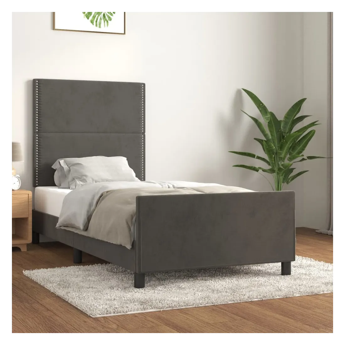 Obtenez une meilleure nuit de sommeil reposante grâce à ce cadre de lit avec tête de lit ! Il est un supplément accueillant à toute chambre à coucher. Velours doux : le velours est un tissu doux et luxueux qui se reconnaît à son tas dense de fibres uniformément coupées qui ont une touche lisse. Le tissu en velours présente un toucher doux distinctif, ce qui le rend confortable au toucher.Hauteur réglable : la tête de lit est réglable en hauteur selon vos préférences.Pieds de soutien : le lit est soutenu par des pieds robustes, qui assurent sa stabilité, sa sécurité et sa fermeté.Lattes de contreplaqué : les lattes de contreplaqué assurent une bonne répartition du poids, garantissant que le matelas reste en place à chaque torsion de votre corps pendant le sommeil.Excellent soutien : la tête de lit vous offre un excellent soutien du dos lorsque vous êtes assis dans votre lit pour lire ou regarder la télévision. Remarque :La livraison comprend uniquement un cadre de lit. Le matelas n'est pas inclus. Vous pouvez consulter notre boutique pour trouver les matelas assortis.Chaque produit est livré avec un manuel de montage dans la boîte pour un montage facile.