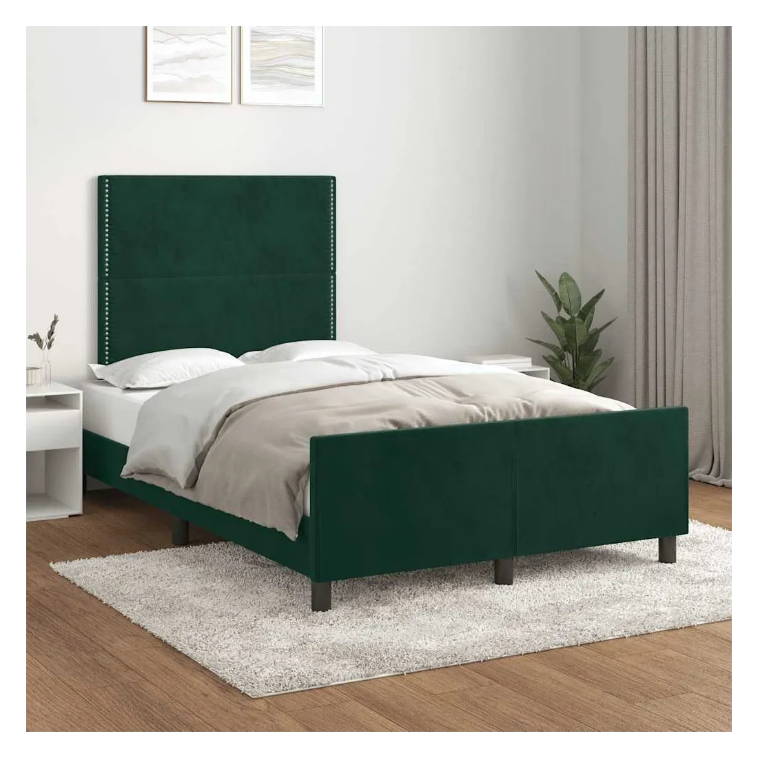 Cadre de lit sans matelas vert foncé 120x200 cm velours