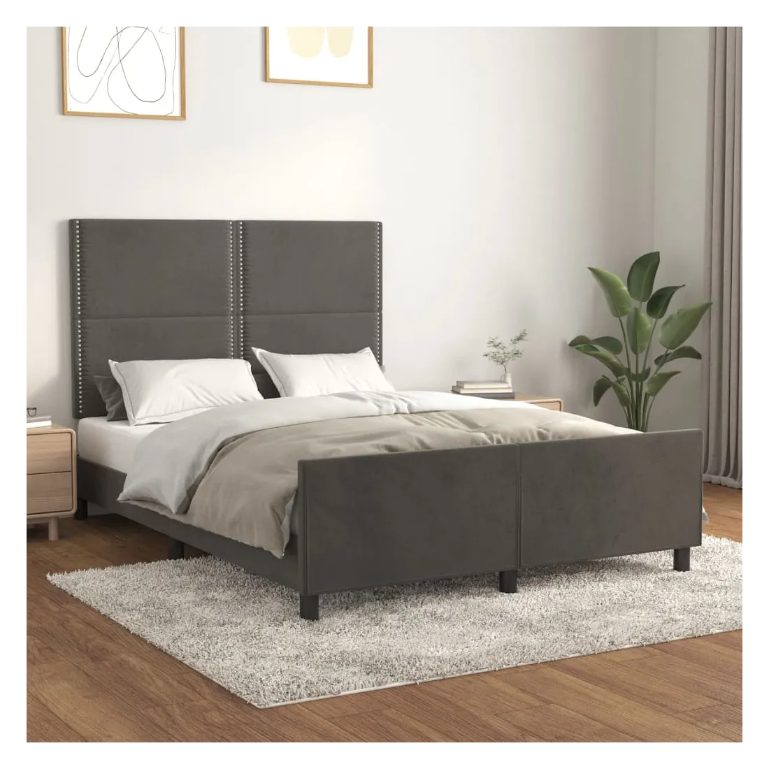 Cadre de lit sans matelas gris foncé 140x200 cm velours