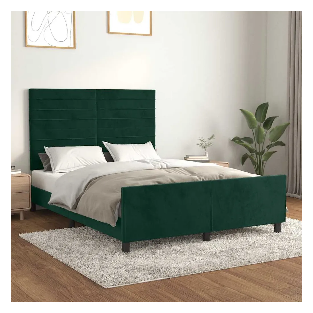 Cadre de lit sans matelas vert foncé 140x190 cm velours