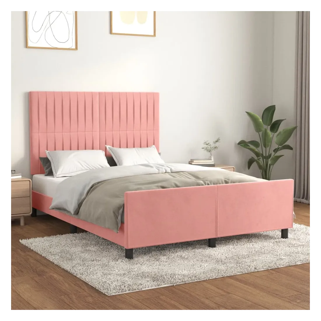 Cadre de lit sans matelas rose 140x190 cm velours