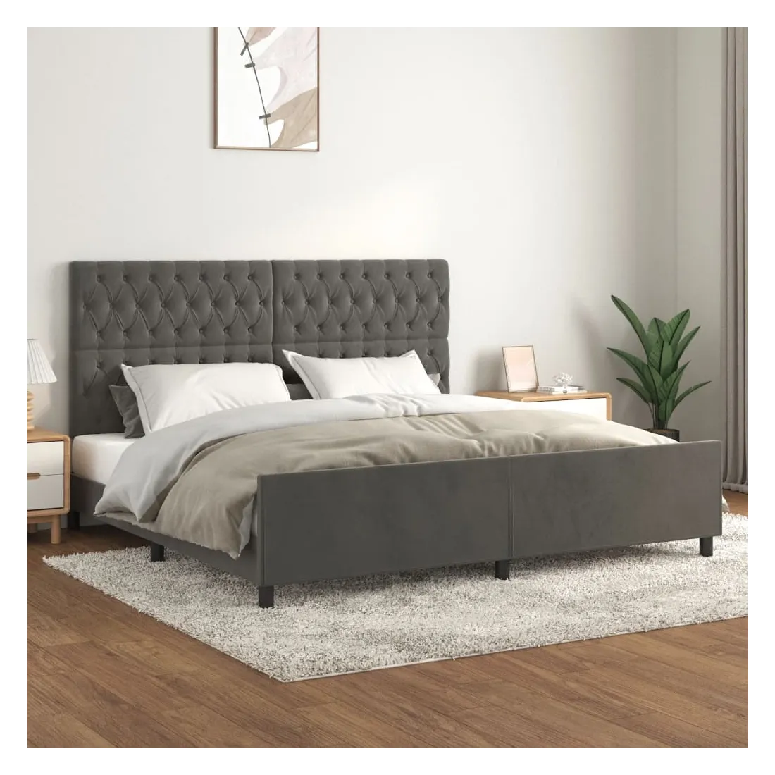 Cadre de lit sans matelas gris foncé 200x200 cm velours