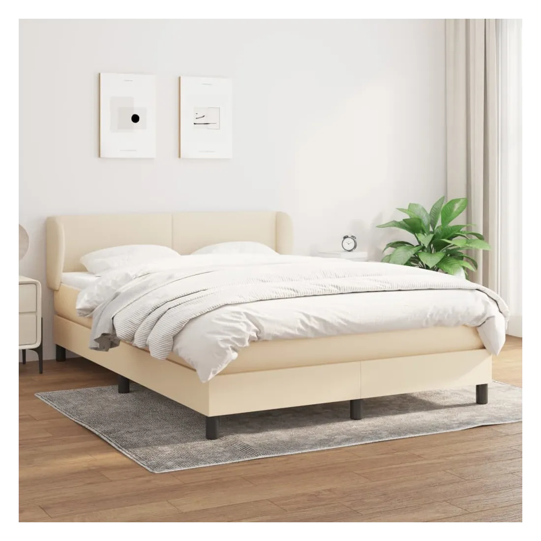 Sommier à lattes de lit avec matelas Crème 140x200 cm Tissu