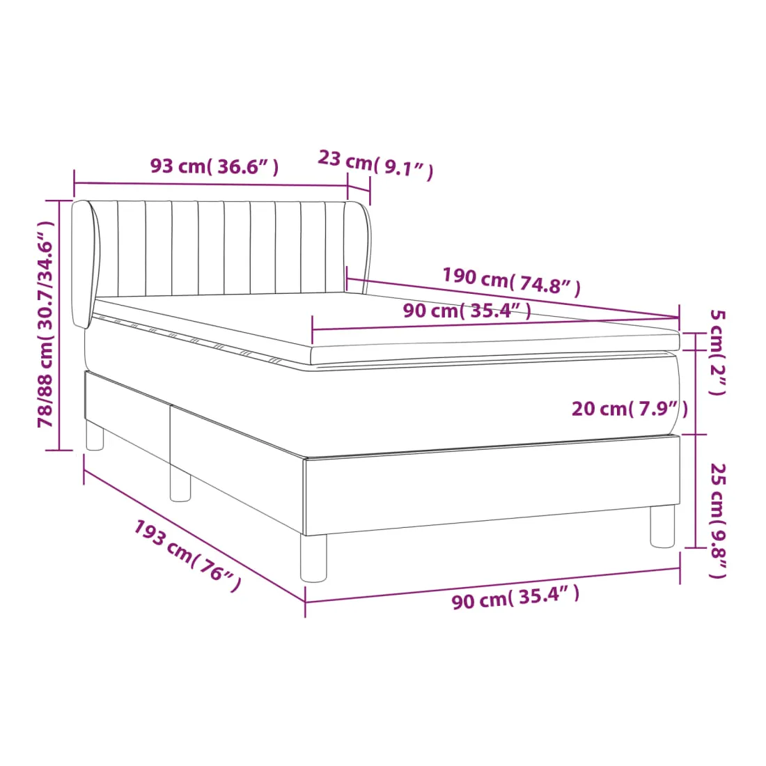 90 x 190 cm