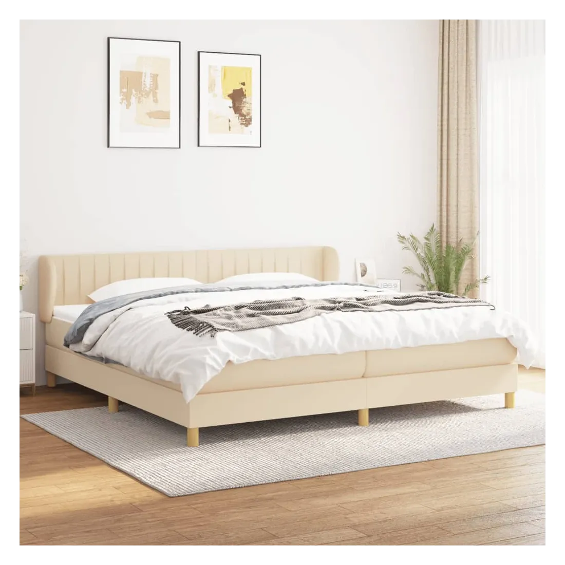 Sommier à lattes de lit avec matelas Crème 200x200 cm Tissu