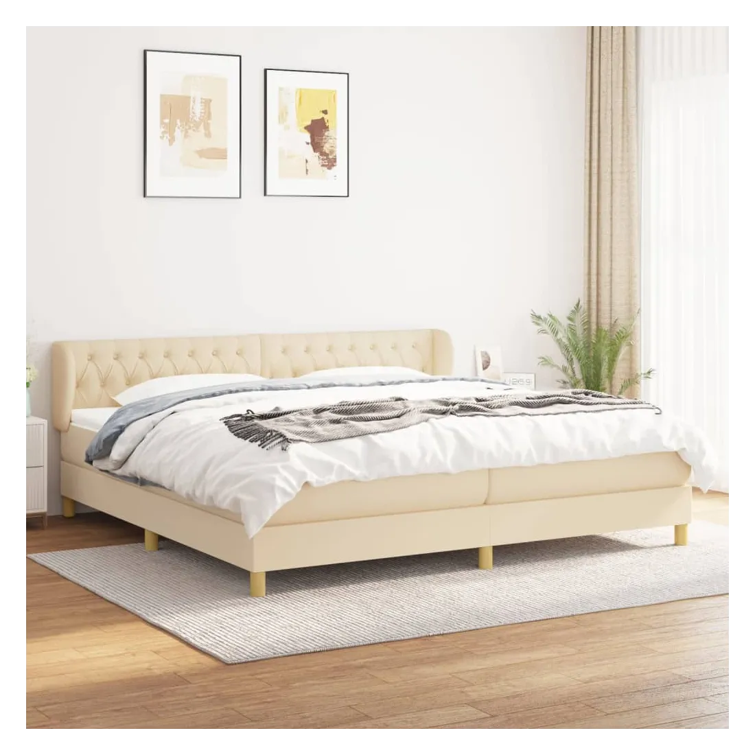 Sommier à lattes de lit avec matelas Crème 200x200 cm Tissu