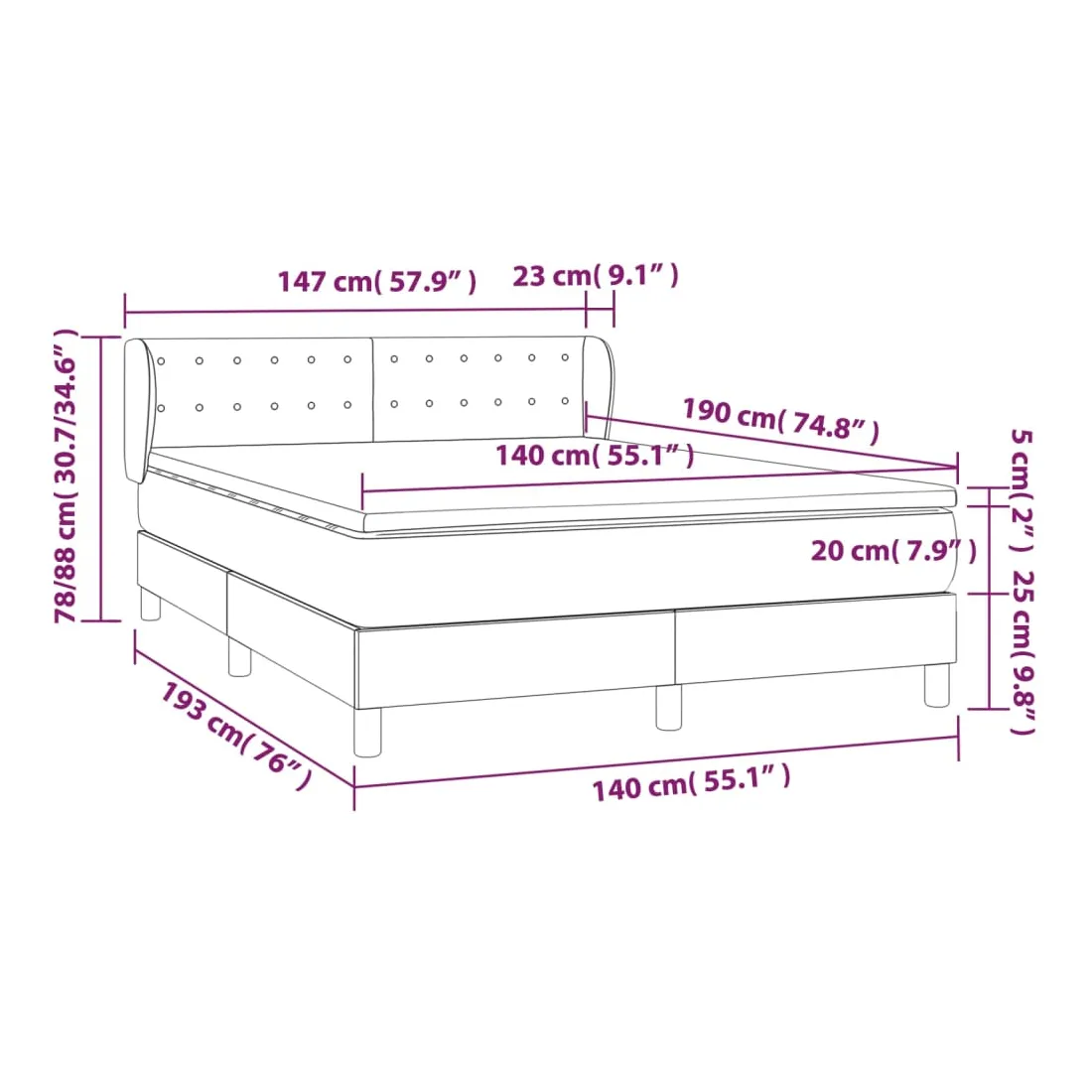 • Dimensions : 140 x 190 x 20 cm (l x L x H)