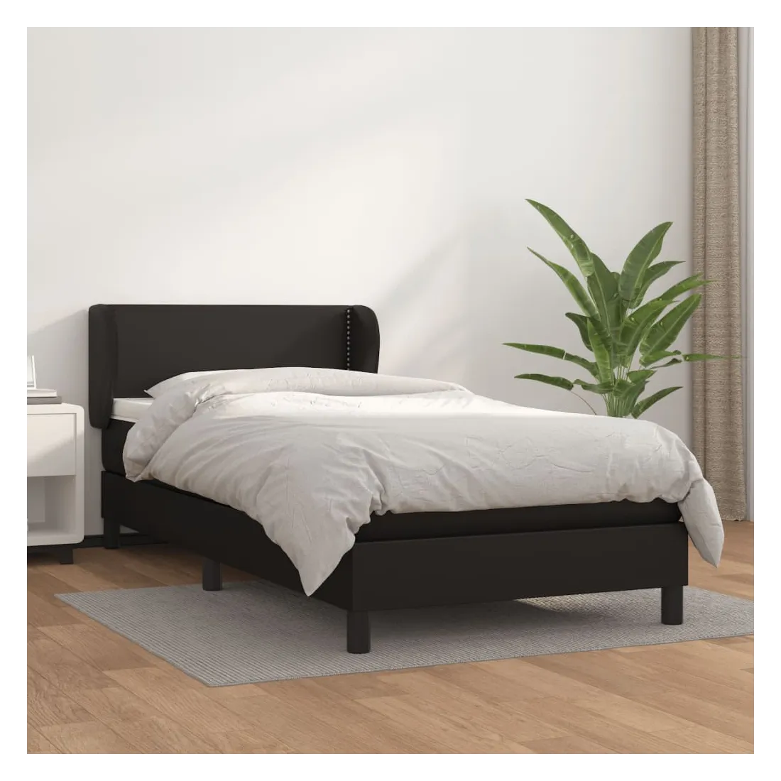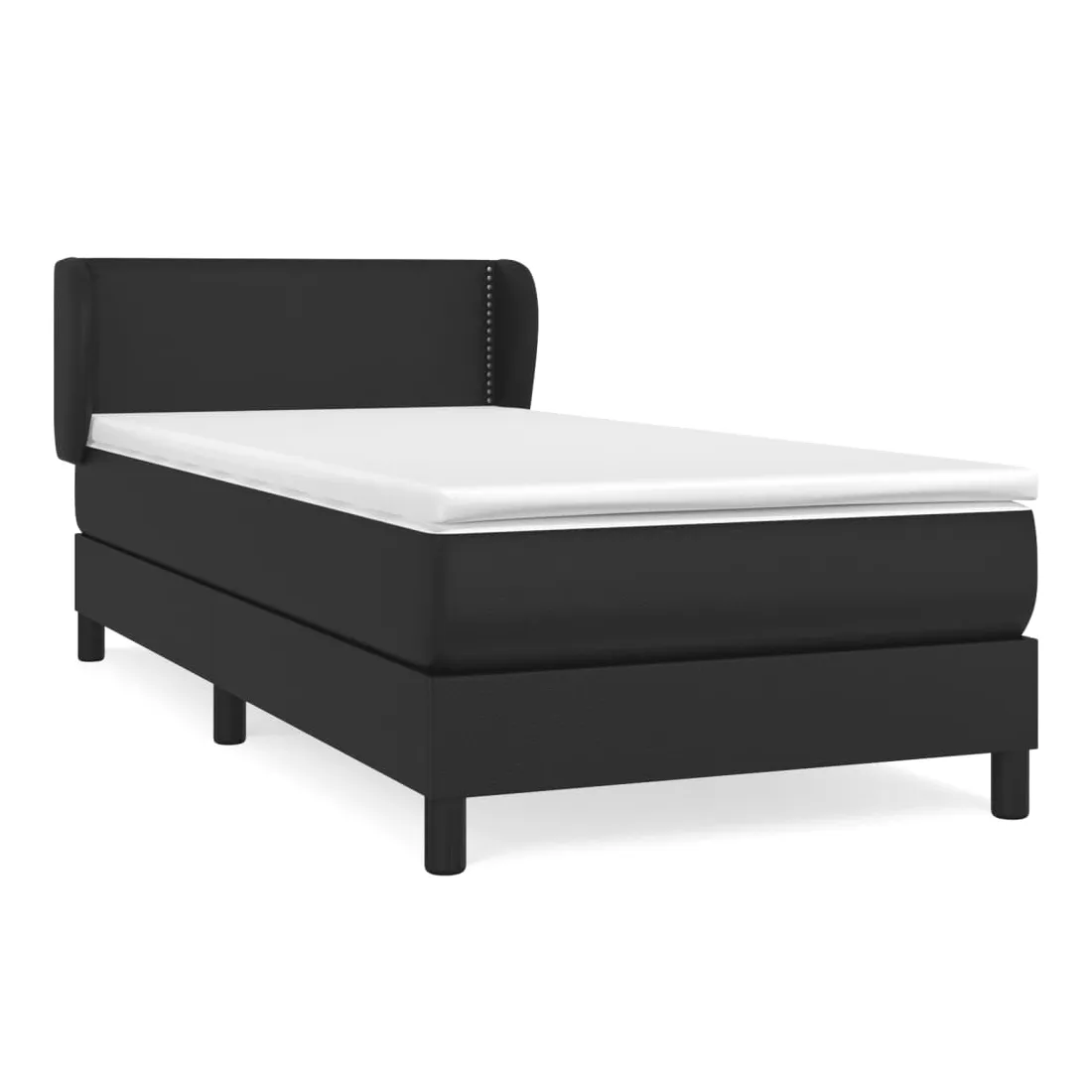 Sommier à lattes de lit avec matelas Noir 90x200 cm Similicuir