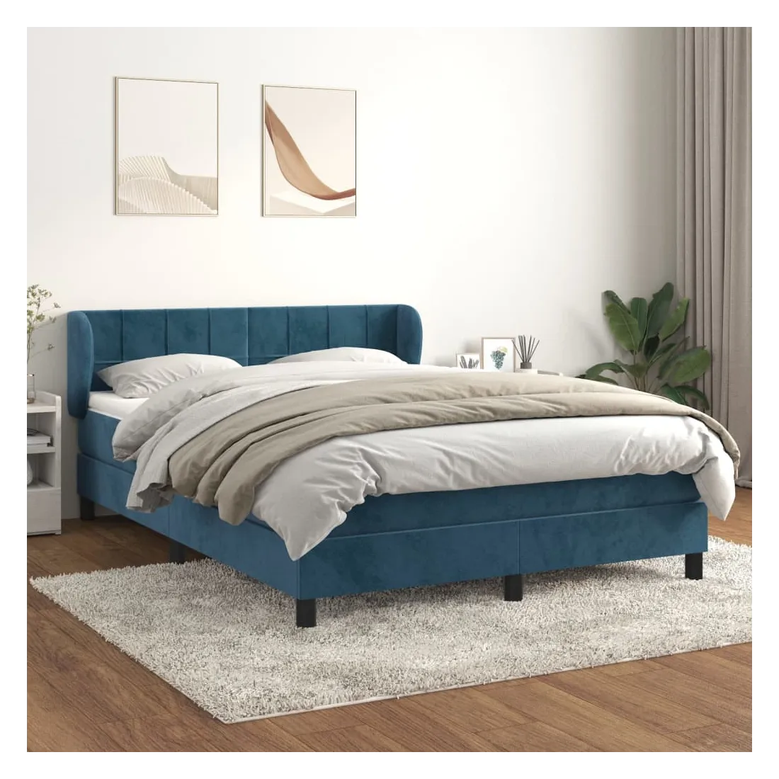 Sommier à lattes de lit et matelas Bleu foncé 140x190cm Velours