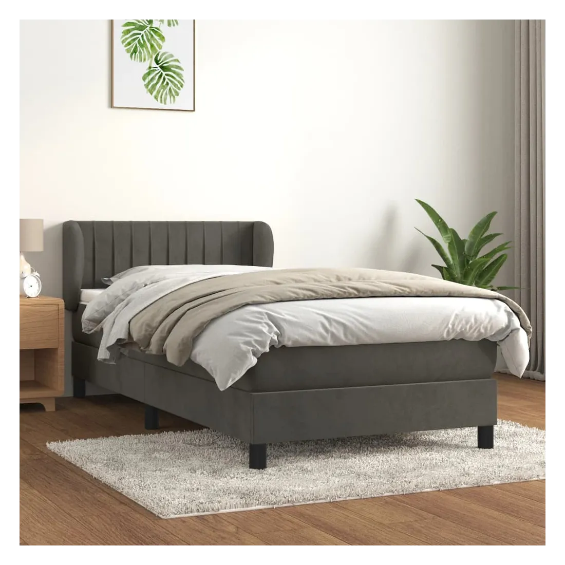Utilisez ce lit à sommier pour profiter d'une nuit de sommeil réparatrice ! Il vous offre une relaxation maximale et un sommeil agréable. Velours doux : le velours est un tissu doux et luxueux qui se reconnaît à son tas dense de fibres uniformément coupées qui ont une touche lisse. Le tissu en velours présente un toucher doux distinctif, ce qui le rend confortable au toucher.Tête de lit pratique : la tête de lit est réglable en hauteur selon vos préférences. La tête de lit vous offre un excellent soutien du dos lorsque vous êtes assis dans votre lit pour lire ou regarder la télévision.Matelas à ressorts ensachés : le ressort ensaché individuel intégré est connu pour sa très haute qualité tout en assurant un haut niveau de durabilité et d'adaptabilité. Il peut absorber efficacement le bruit et les chocs causés par les sauts et les rotations.Support moyen-dur : ce matelas de lit offre une stabilité accrue et juste le niveau de fermeté sans sacrifier le confort. Il est donc idéal pour les personnes qui dorment sur le dos ou sur le ventre.Protège-matelas doux pour la peau : le protège-matelas est recouvert d'un tissu résistant et doux pour la peau, ce qui le rend souple et confortable. Remarque :Pour des raisons d'hygiène, le matelas ne peut pas être retourné si l'emballage est retiré ou ouvert.Chaque produit est livré avec un manuel de montage dans la boîte pour un montage facile.