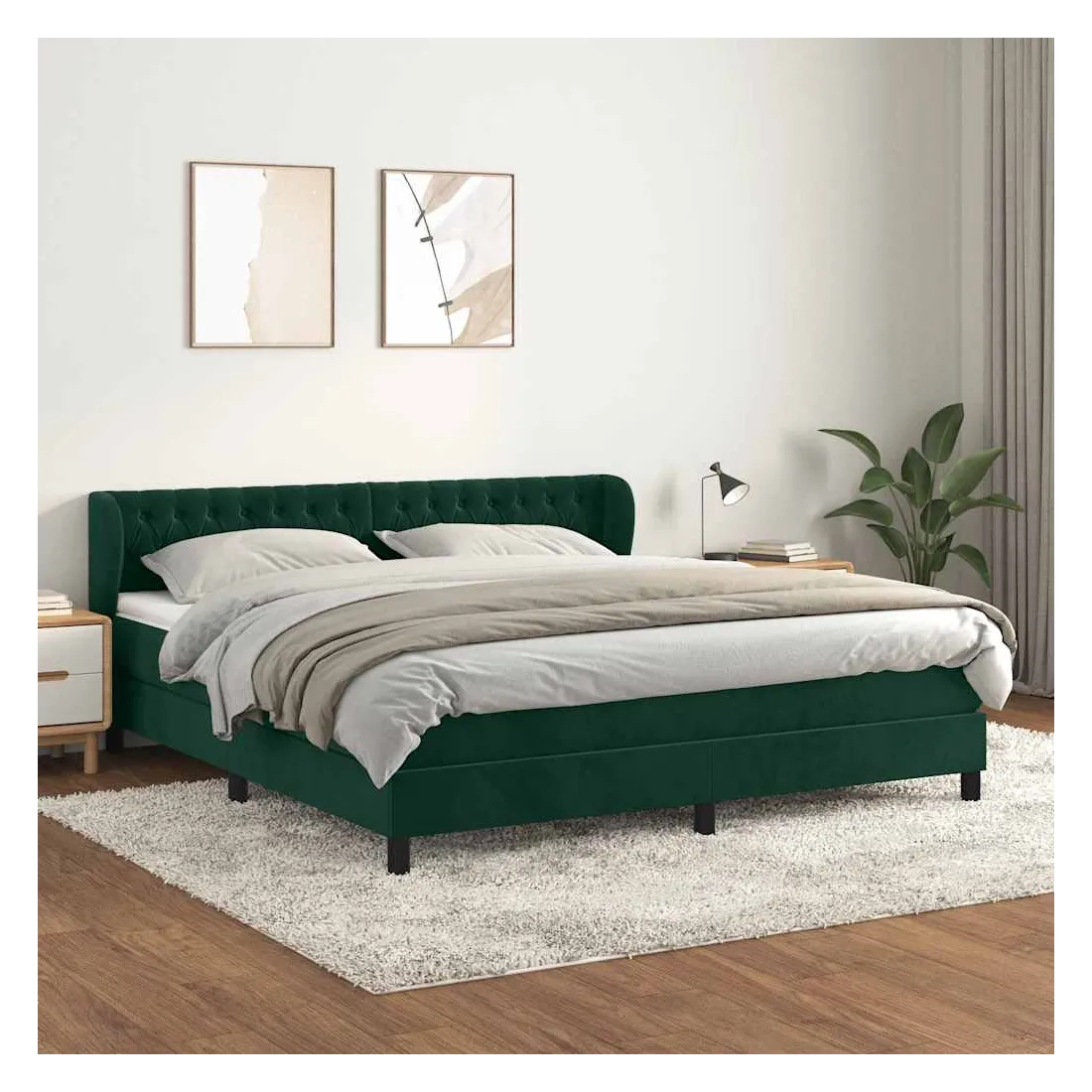 Sommier à lattes de lit et matelas Vert foncé 160x200cm Velours