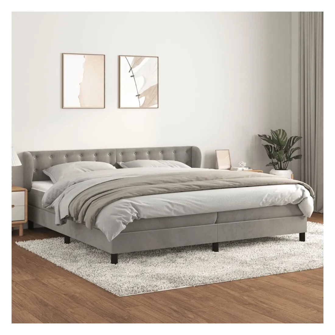 Utilisez ce lit à sommier pour profiter d'une nuit de sommeil réparatrice ! Il vous offre une relaxation maximale et un sommeil agréable. Velours doux : le velours est un tissu doux et luxueux qui se reconnaît à son tas dense de fibres uniformément coupées qui ont une touche lisse. Le tissu en velours présente un toucher doux distinctif, ce qui le rend confortable au toucher. Tête de lit pratique : la tête de lit est réglable en hauteur selon vos préférences. La tête de lit vous offre un excellent soutien du dos lorsque vous êtes assis dans votre lit pour lire ou regarder la télévision. Matelas à ressorts ensachés : le ressort ensaché individuel intégré est connu pour sa très haute qualité tout en assurant un haut niveau de durabilité et d'adaptabilité. Il peut absorber efficacement le