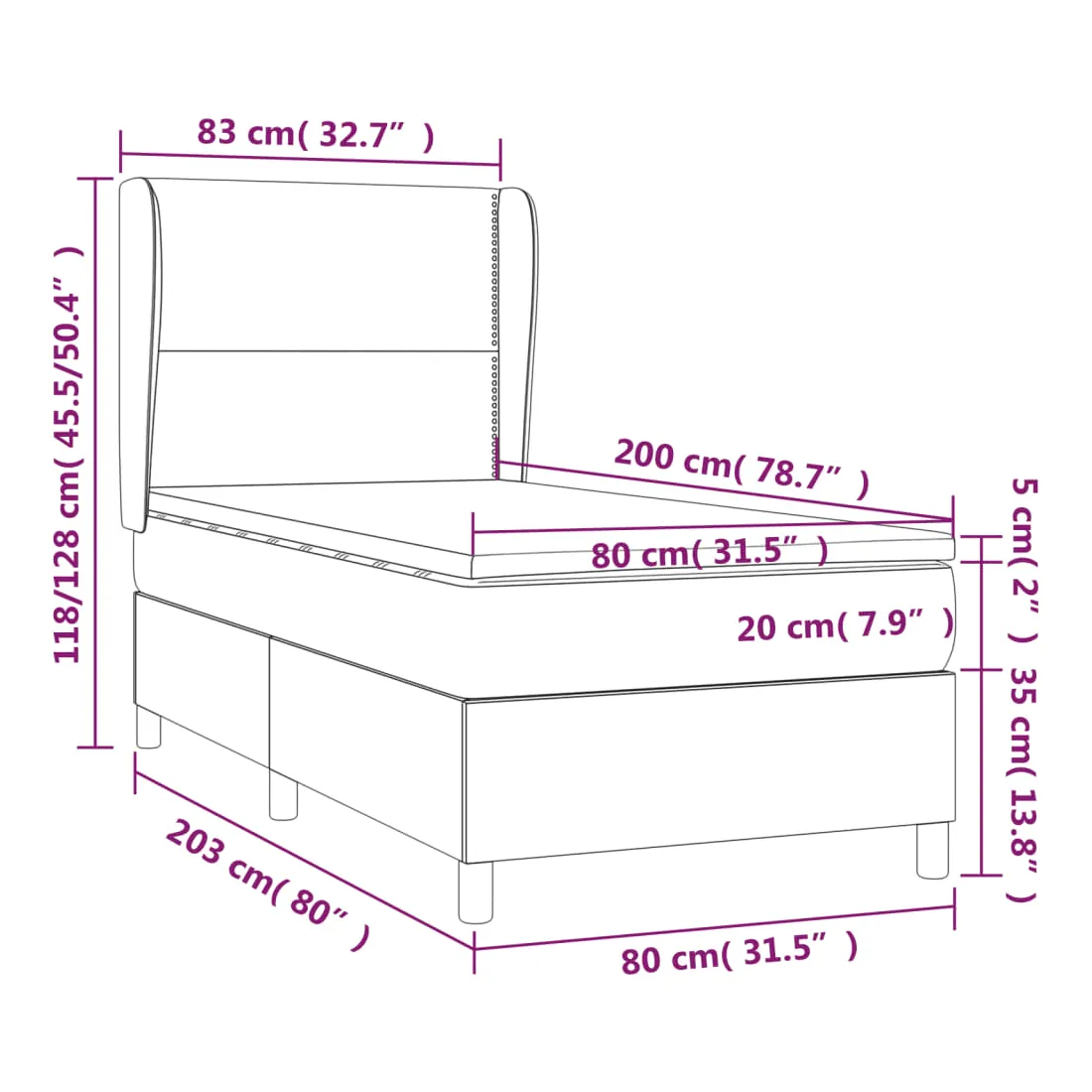 • Dimensions : 203 x 83 x 118/128 cm (L x l x H)
