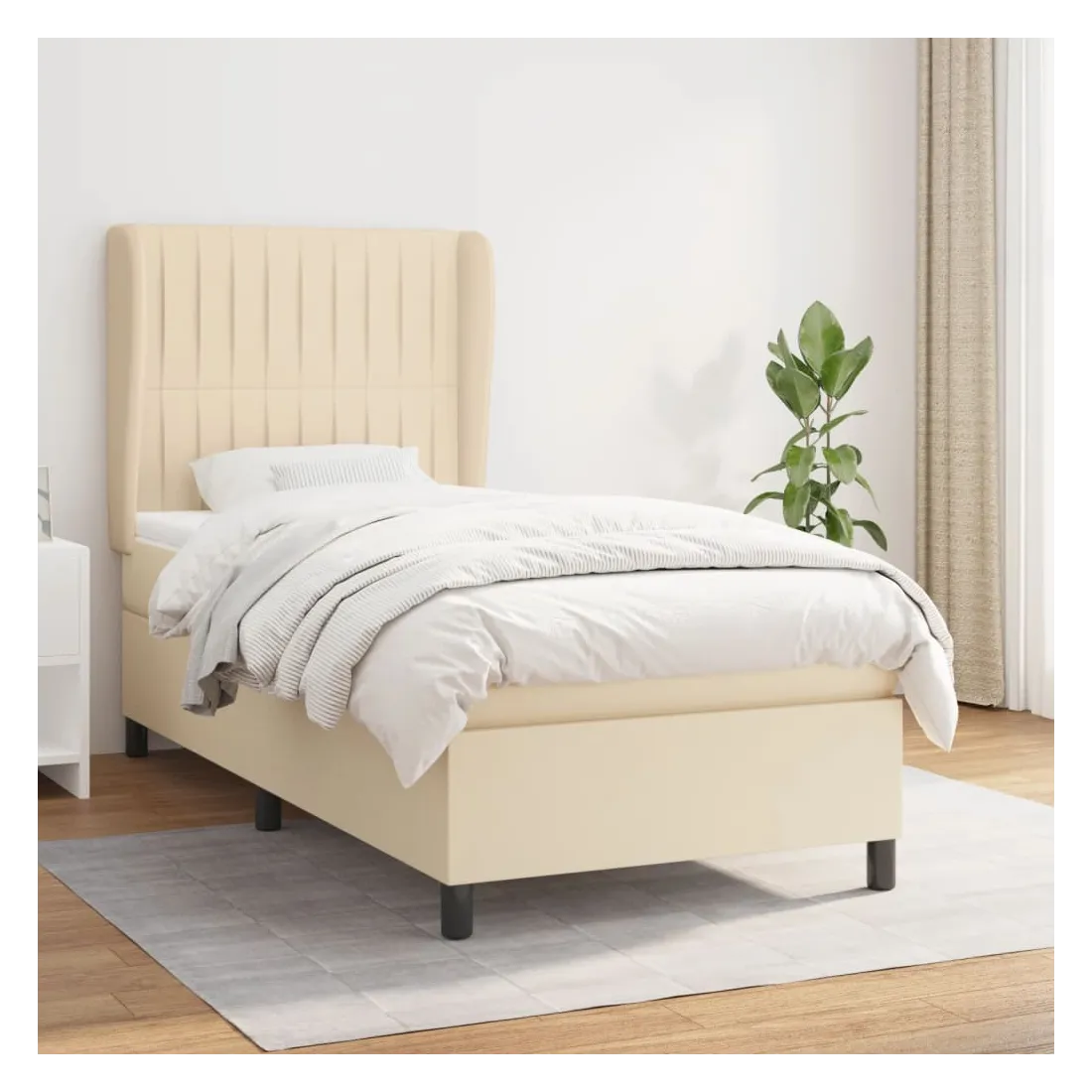 Sommier à lattes de lit et matelas Crème 90x190 cm Tissu