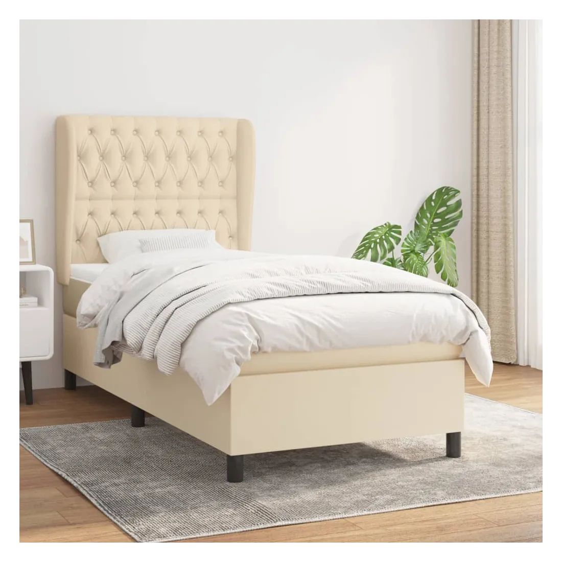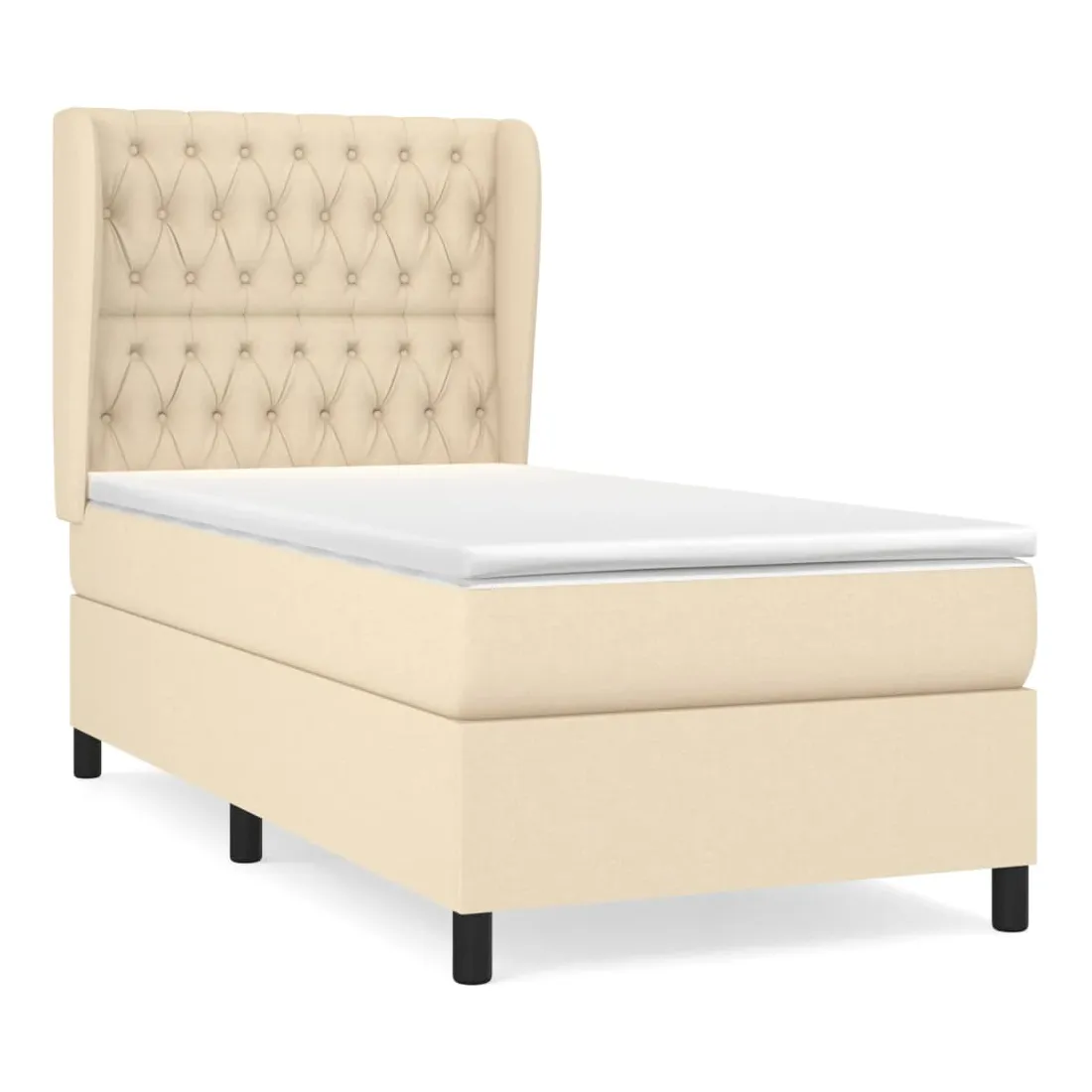 Sommier à lattes de lit et matelas Crème 90x190 cm Tissu