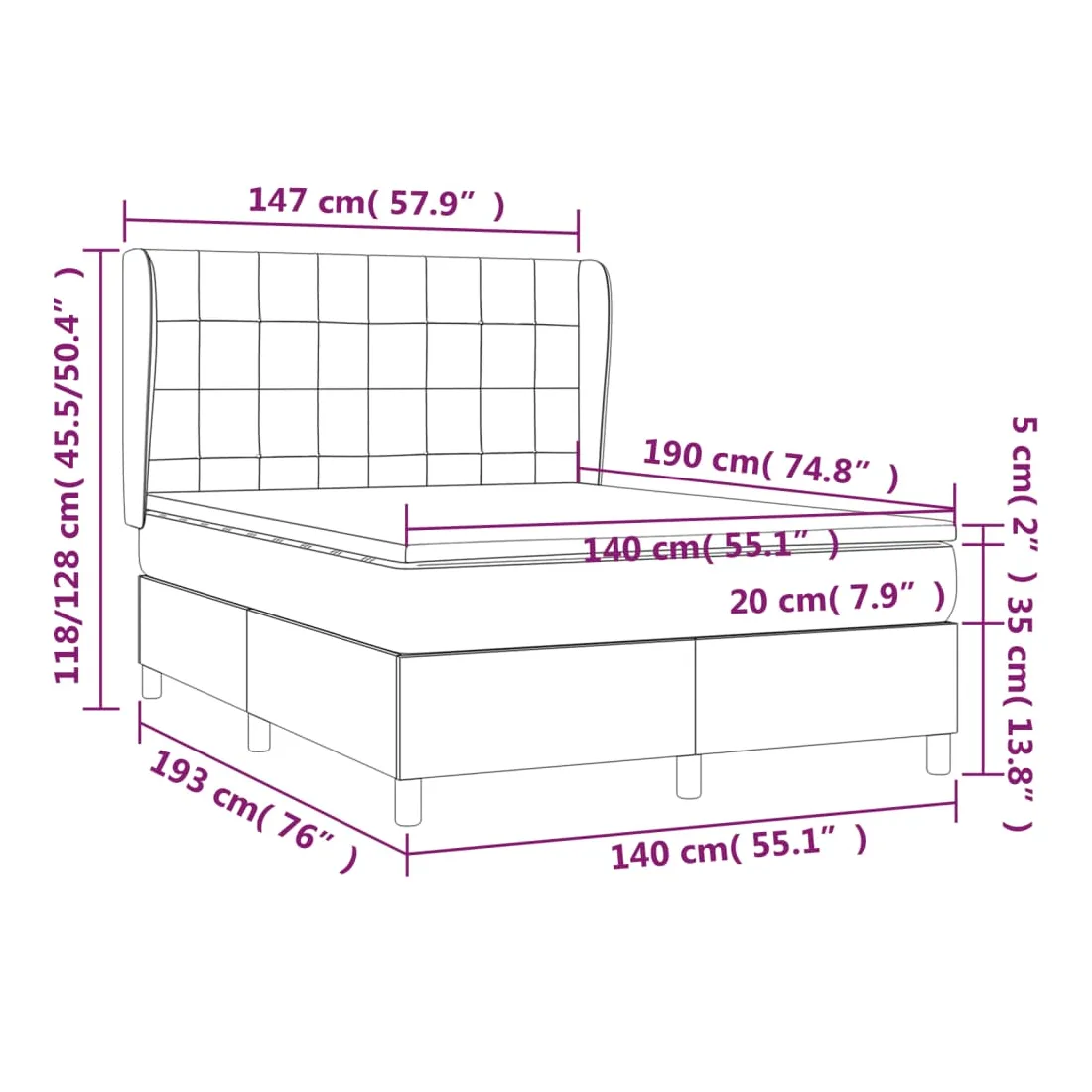 Sommier à lattes de lit avec matelas Noir 140x190 cm Tissu