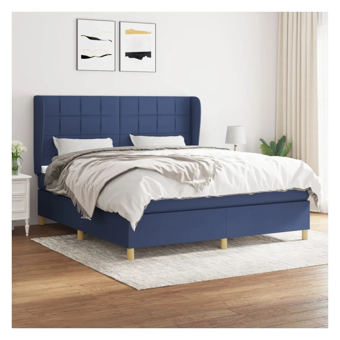 Sommier à lattes de lit avec matelas Bleu 160x200 cm Tissu
