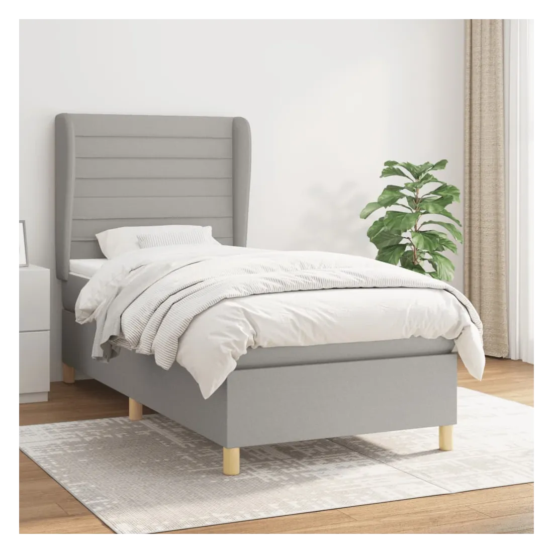 Sommier à lattes de lit avec matelas Gris clair 100x200cm Tissu