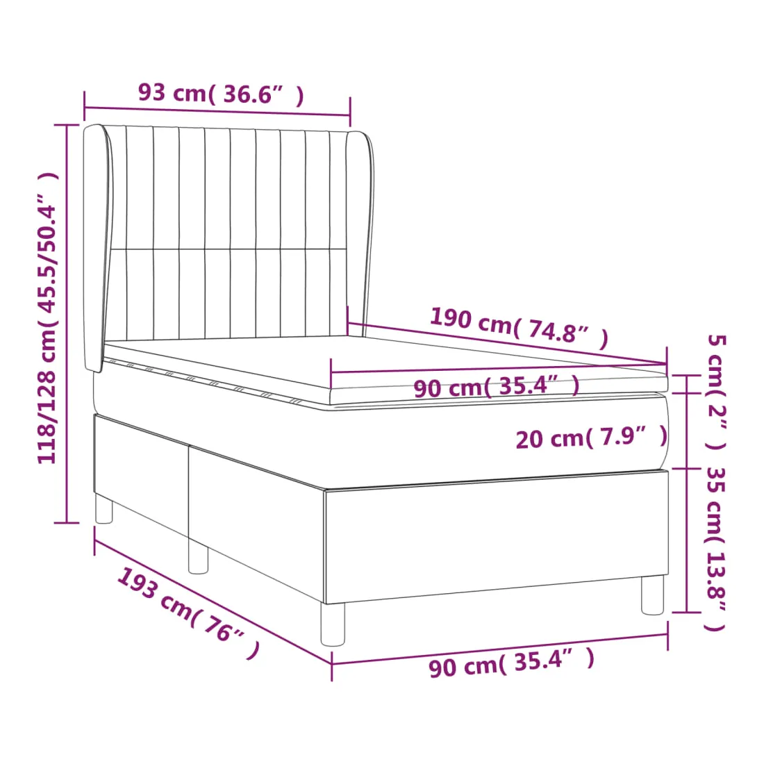 90 x 190 cm