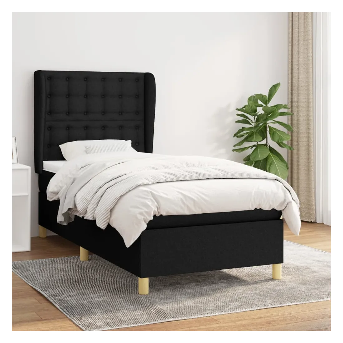 Sommier à lattes de lit avec matelas Noir 100x200 cm Tissu