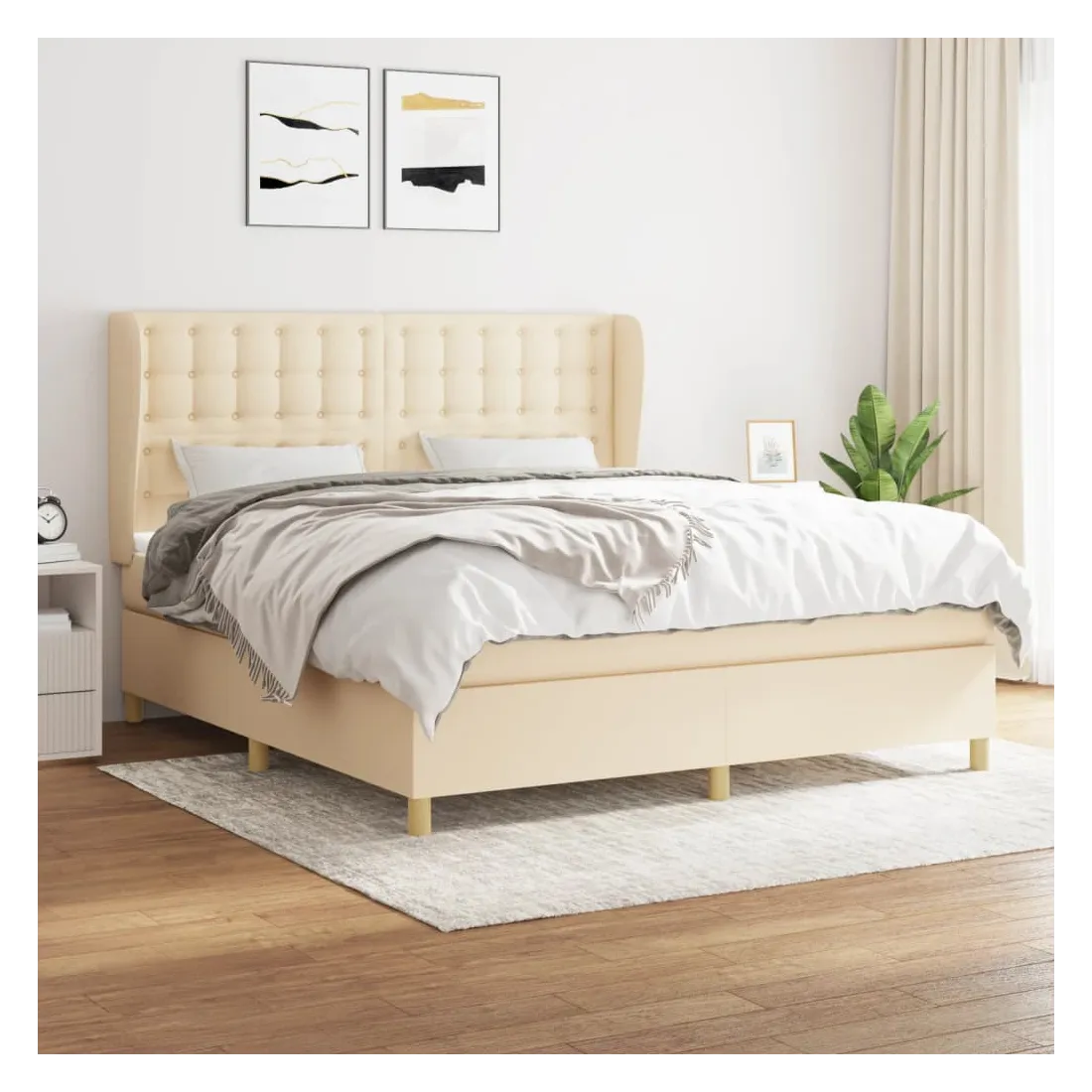 Sommier à lattes de lit avec matelas Crème 180x200 cm Tissu