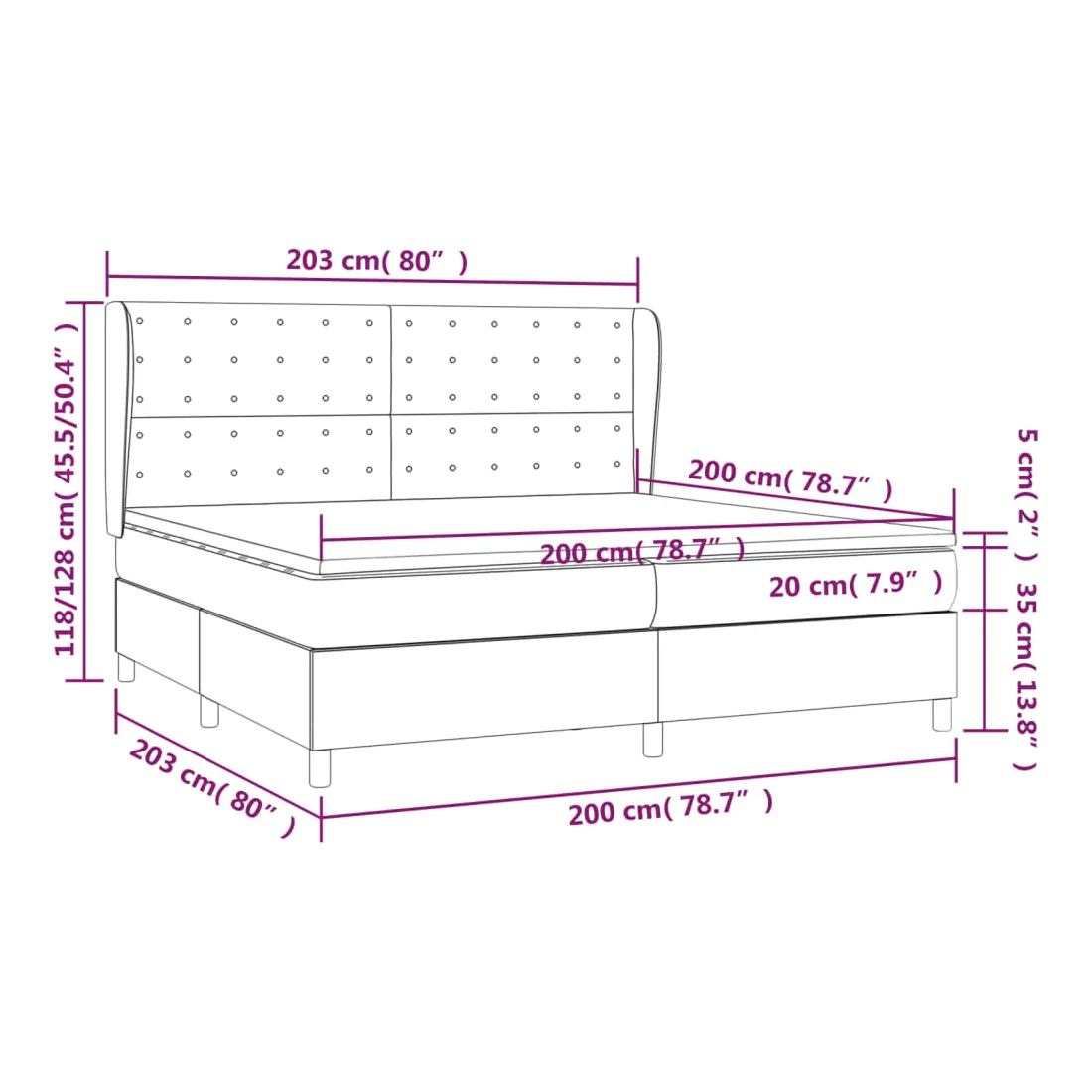 - Dimensions : 203 x 203 x 118/128 cm (L x l x H)