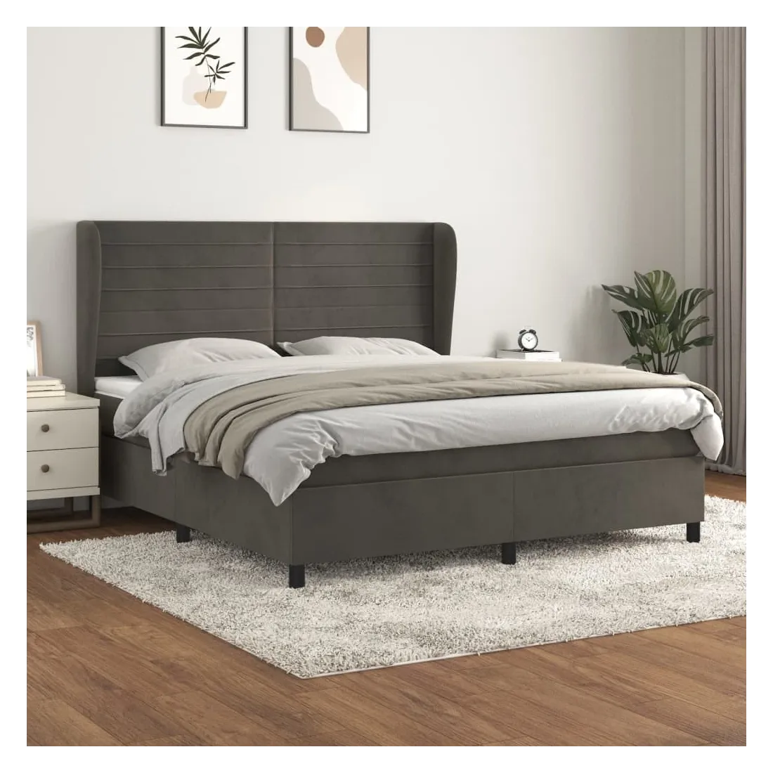 Utilisez ce lit à sommier pour profiter d'une nuit de sommeil réparatrice ! Il vous offre une relaxation maximale et un sommeil agréable. Velours doux : le velours est un tissu doux et luxueux qui se reconnaît à son tas dense de fibres uniformément coupées qui ont une touche lisse. Le tissu en velours présente un toucher doux distinctif, ce qui le rend confortable au toucher.Tête de lit pratique : la tête de lit est réglable en hauteur selon vos préférences. La tête de lit vous offre un excellent soutien du dos lorsque vous êtes assis dans votre lit pour lire ou regarder la télévision.Matelas à ressorts ensachés : le ressort ensaché individuel intégré est connu pour sa très haute qualité tout en assurant un haut niveau de durabilité et d'adaptabilité. Il peut absorber efficacement le bruit et les chocs causés par les sauts et les rotations.Support moyen-dur : ce matelas de lit offre une stabilité accrue et juste le niveau de fermeté sans sacrifier le confort. Il est donc idéal pour les personnes qui dorment sur le dos ou sur le ventre.Protège-matelas doux pour la peau : le protège-matelas est recouvert d'un tissu résistant et doux pour la peau, ce qui le rend souple et confortable. Remarque :Pour des raisons d'hygiène, le matelas ne peut pas être retourné si l'emballage est retiré ou ouvert.Chaque produit est livré avec un manuel de montage dans la boîte pour un montage facile.